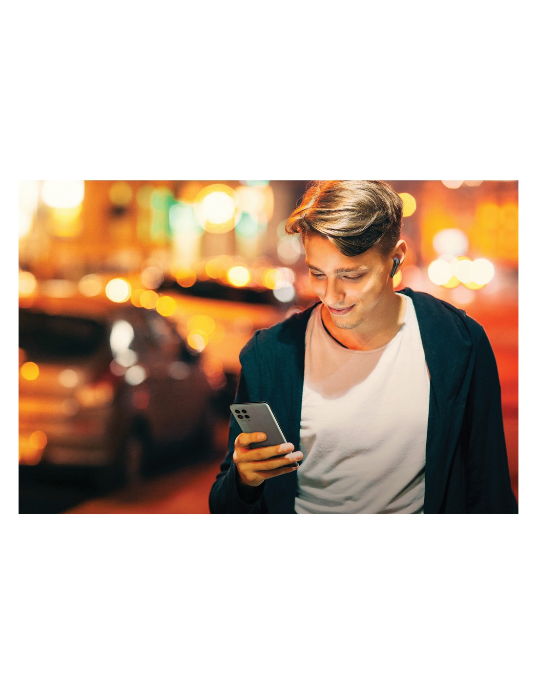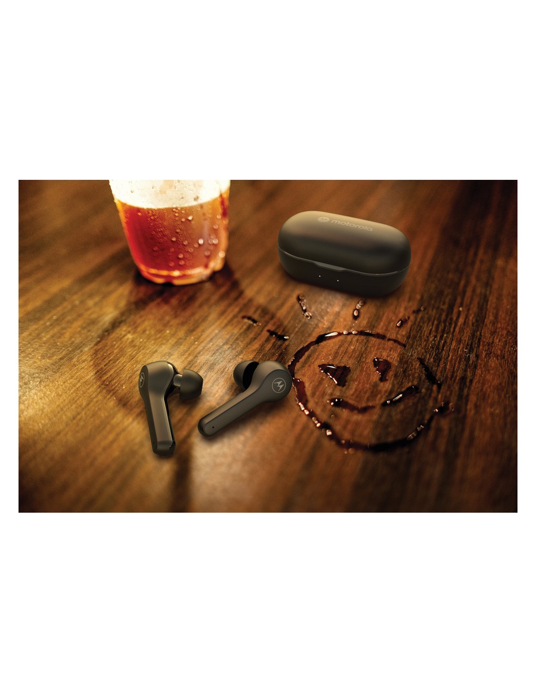 Motorola BT2.0 TWS. Auricolari dalla vestibilità ergonomica. Progettati per comfort e indossabilità sicura. Con controllo touch. Hanno un'autonomia di 6 ore e di ulteriori 15 ore nella custodia. Includono microfono e assistente vocale intelligente; Siri® e Google Assistant™