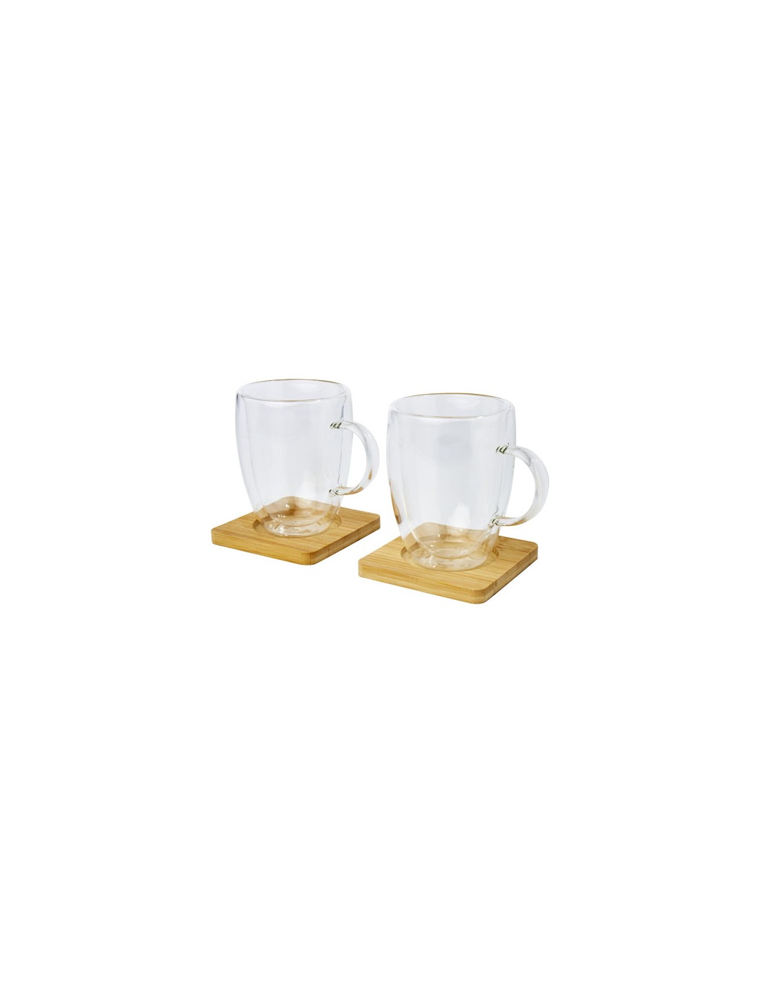 Set di 2 tazze in vetro a doppia parete da 350 ml con sottobicchiere in bambù Manti