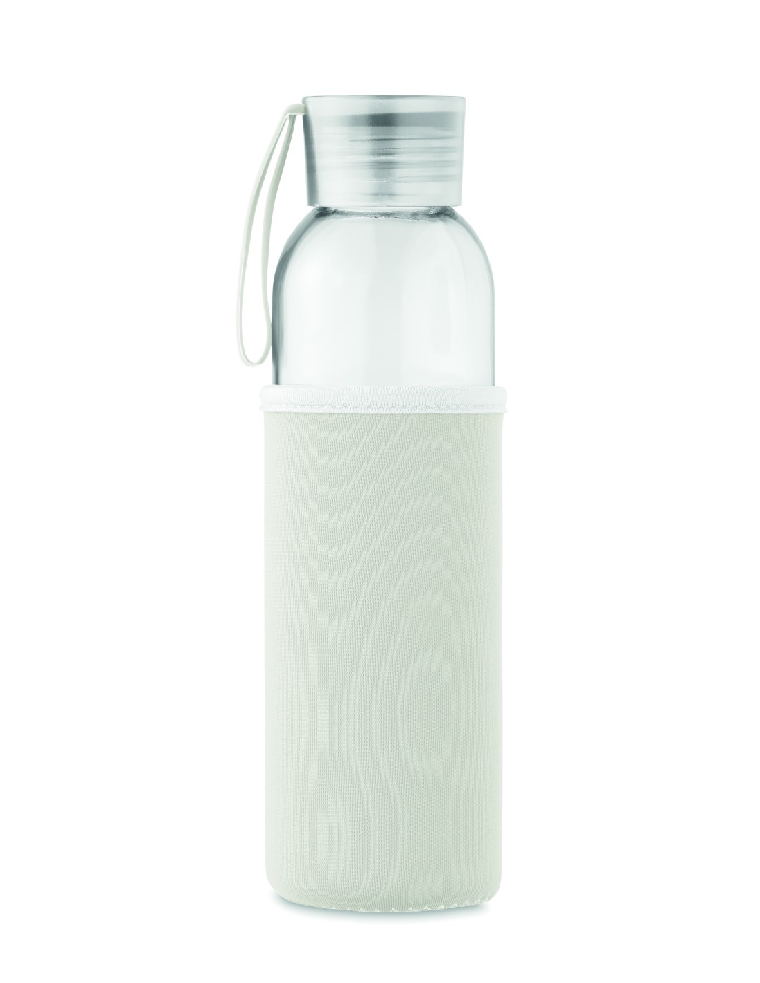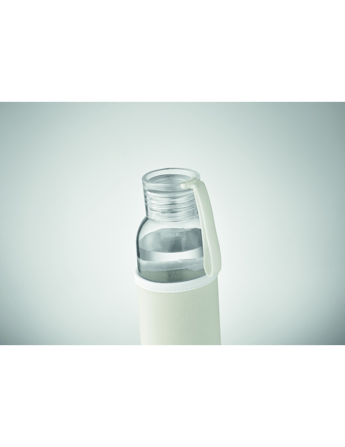 Bottiglia in vetro da 500 ml, con pouch in neoprene. Non adatto a bevande gassate, alcoliche e a base di latte. Antigoccia.