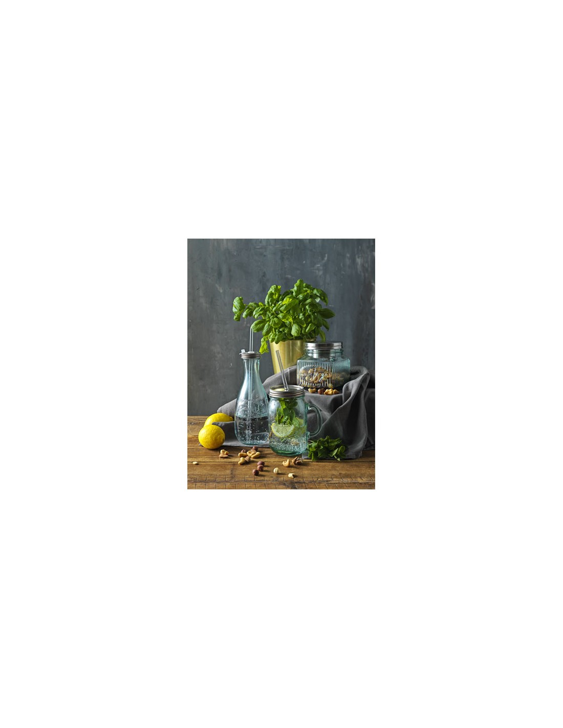 Questa tazza da 550 ml con cannuccia in vetro riciclato al 100% è perfetta per bere acqua, limonate, tè, succhi di frutta oppure cocktail. La tazza è realizzata con bottiglie di vetro riciclato e presenta un coperchio a vite in acciaio inossidabile. Un accessorio alla moda, adatto a chi desidera gustare la propria bevanda preferita in giro. Il vetro riciclato viene prodotto utilizzando meno energia, materie prime e additivi rispetto a quanto richiesto per la produzione di vetro tradizionale. La tazza e la cannuccia sono lavabili in lavastoviglie.