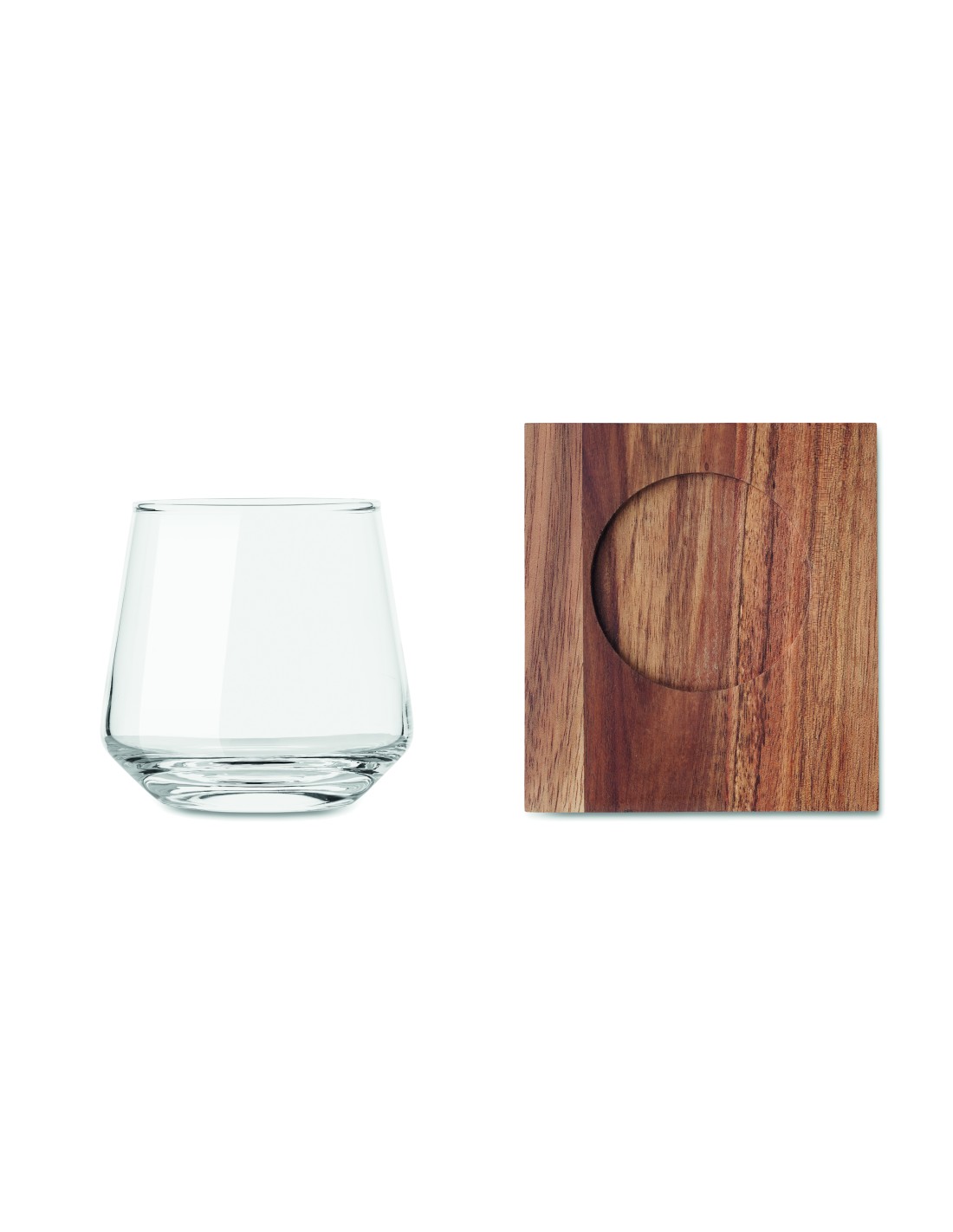Bicchiere basso con sottobicchiere in legno d'acacia. Per whisky o altri liquori. Capacità: 200 ml FSC®-certified | FSC 100%, W16.3, FSC-C213206