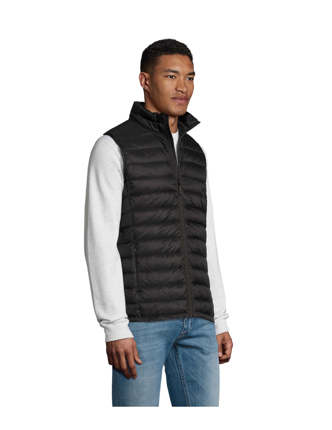 SOL'S WILSON BW UOMO. Piumino leggero da uomo in piuma. Tessuto esterno e fodera: 100% poliammide. Imbottitura 60% Sorona 40% poliestere riciclato. POLIAMMIDE 380T, Apertura con zip, 2 tasche anteriori con zip, 2 tasche interne Piccolo collo alto, Taglio aderente, Sistema di piegatura ''In bag'' con stopper. OEKO-TEX®. Venduto solo con la stampa.