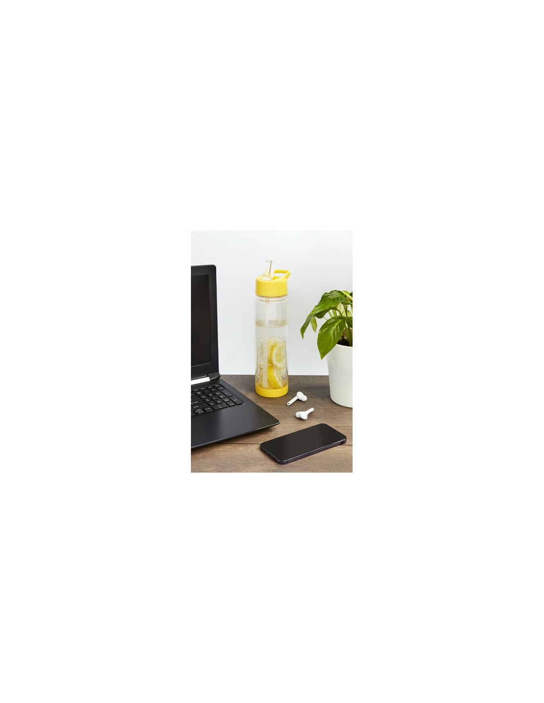Borraccia sportiva a parete singola in PET riciclato, con un design ergonomico che la rende facile da usare e coperchio ermetico. Dispone di apertura a scatto e infusore rimovibile che permette di aggiungere frutta o erbe aromatiche alla bevanda. Senza BPA. Capacità di 700ml.