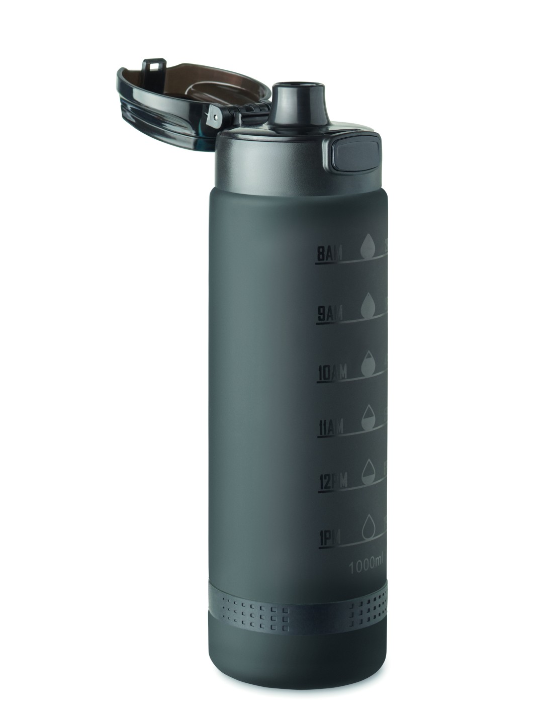 Bottiglia in RPET senza BPA e tappo in acciaio inox con impugnatura sul tappo. Senza perdite. Capacità: 600 ml.
