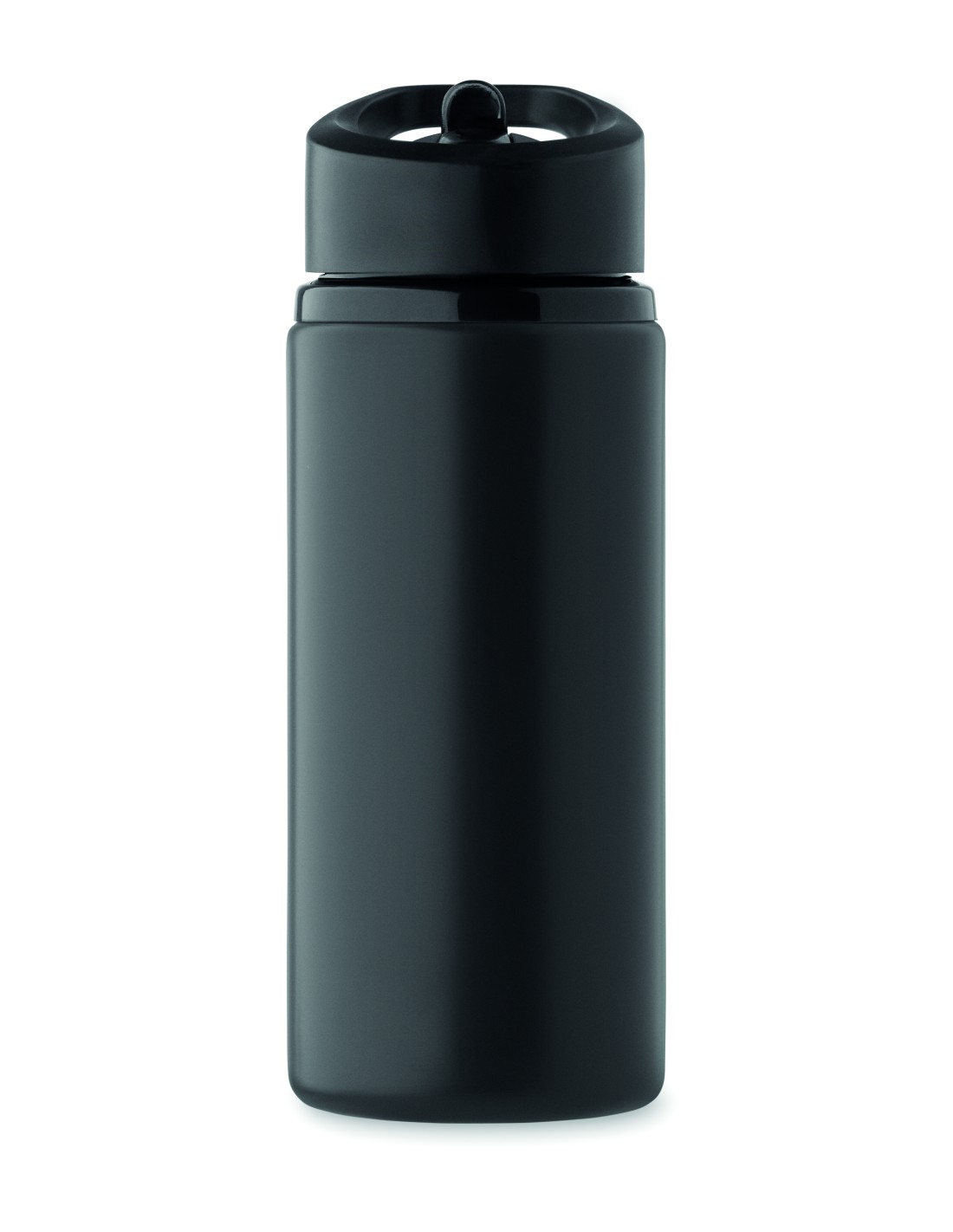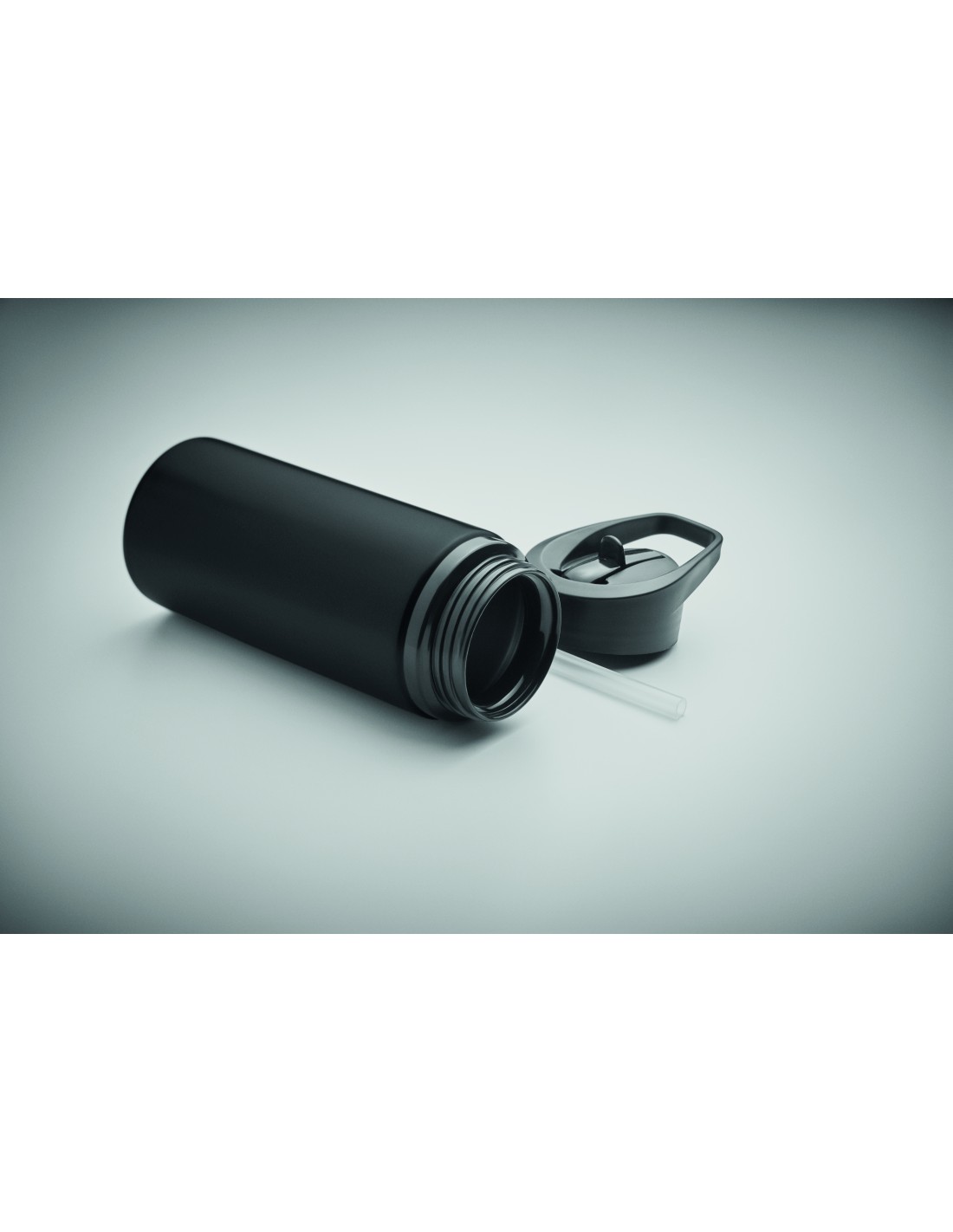 Bottiglia a singolo strato in acciaio inox riciclato (90% acciaio inox riciclato e 10% acciaio inox) con imboccatura pieghevole, cannuccia e coperchio con maniglia per il trasporto. Capacità: 500 ml. Poiché si tratta di una bottiglia a parete singola, si può verificare il trasferimento di calore.