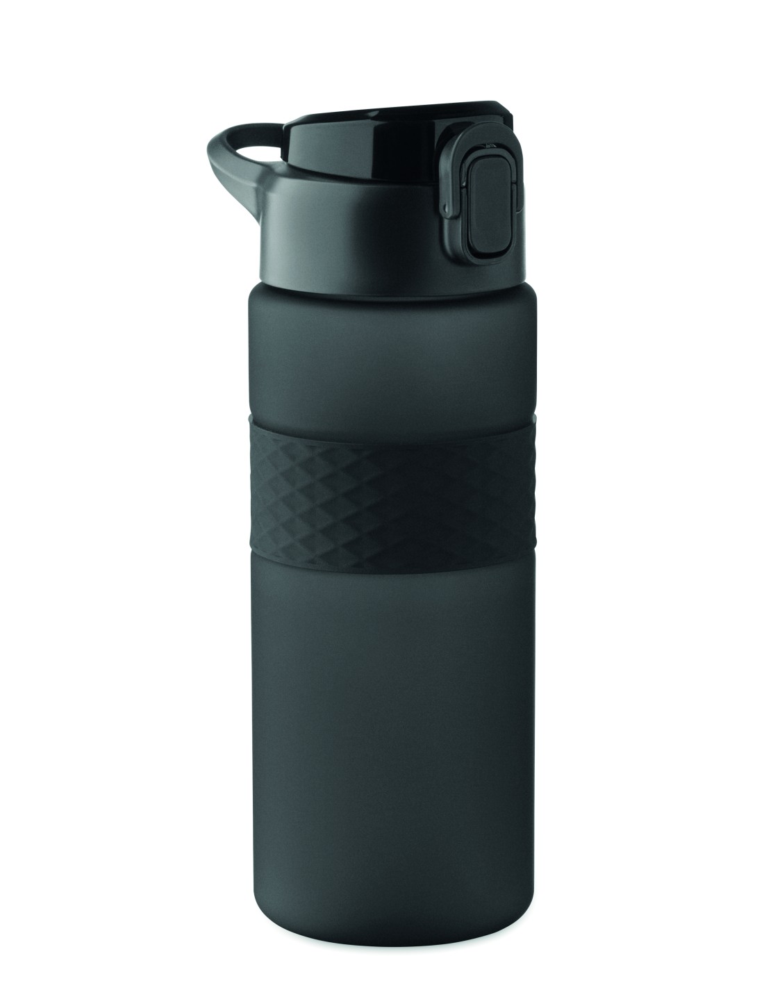 Bottiglia in RPET con impugnatura in silicone, coperchio flip-top in PP e chiusura di sicurezza. Include cannuccia integrata. Senza perdite. Capacità: 700 ml.