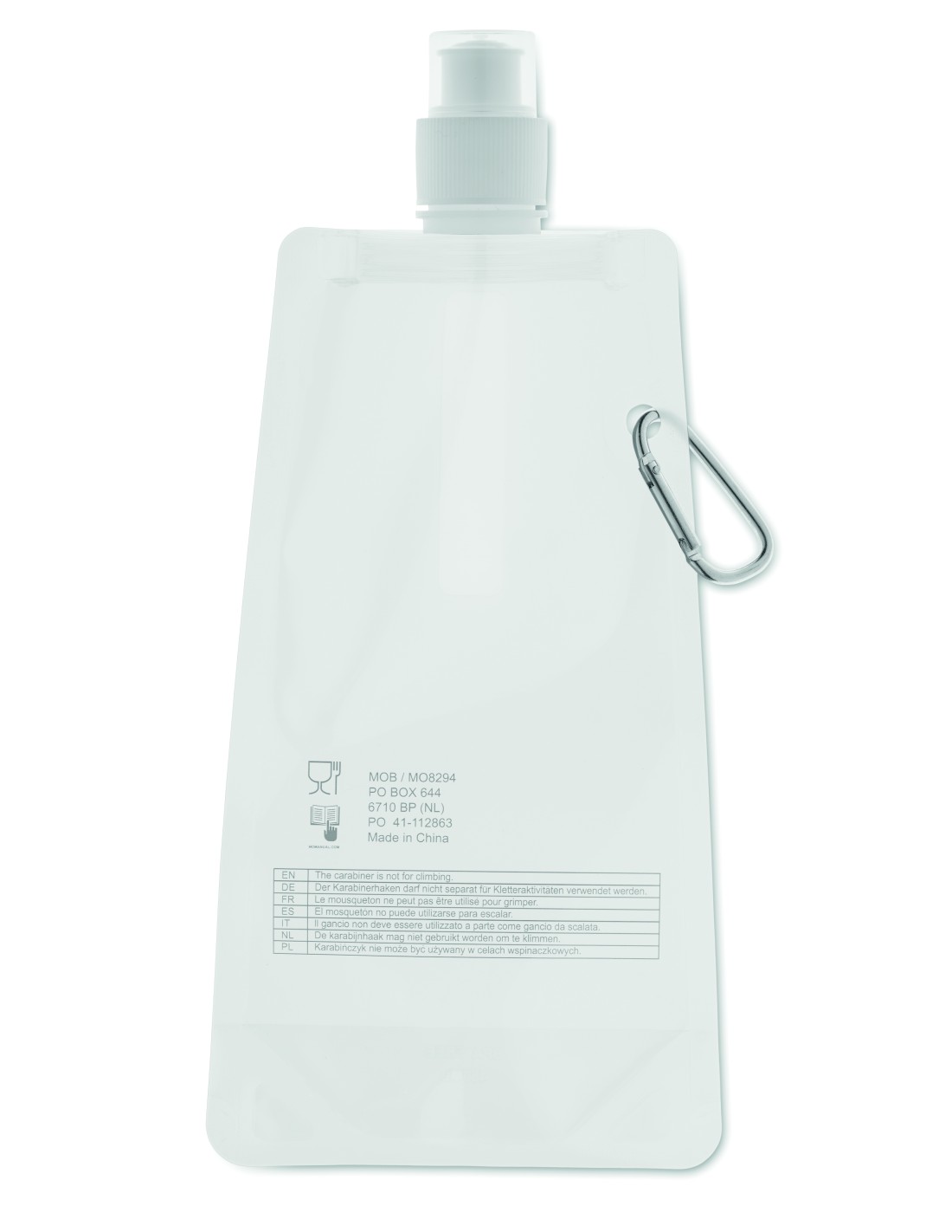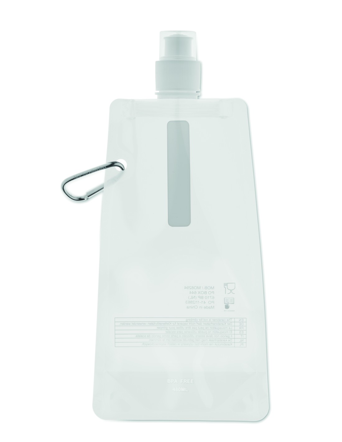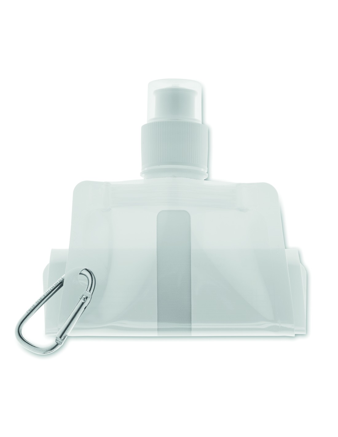 Borraccia pieghevole in PET, BPA free con moschettone in alluminio. 480ml. Antigoccia.