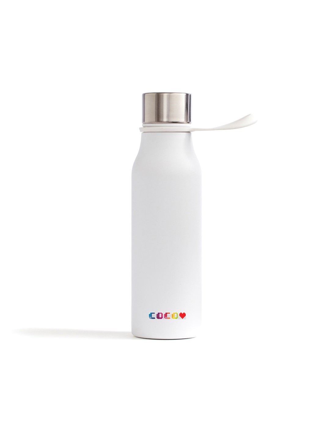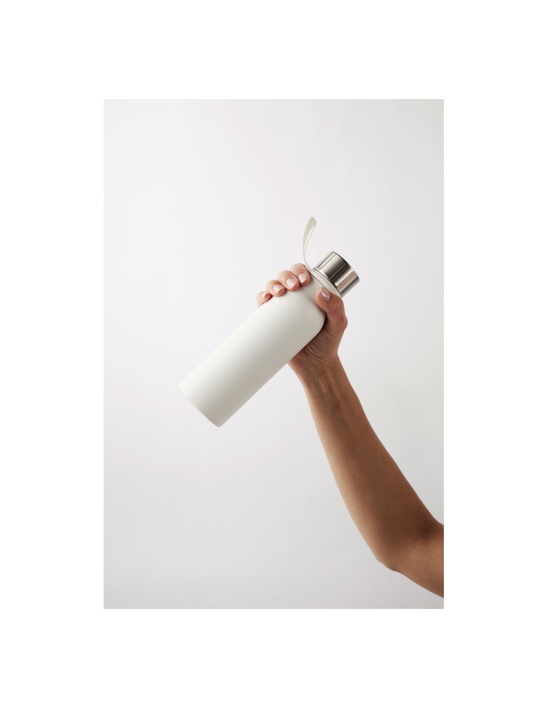 Bottiglia termica in acciaio inossidabile da abbinare alla bottiglia della stessa serie. L'occhiello sul coperchio è ottimo per agganciarla alla tua borsa e grazie alla sua forma si adatta alla maggior parte dei portabicchieri. E' adatta sia alle bevande calde che a quelle fredde, mantenendo intatta la temperatura per lungo tempo. Facile da pulire. Non va in lavastoviglie.