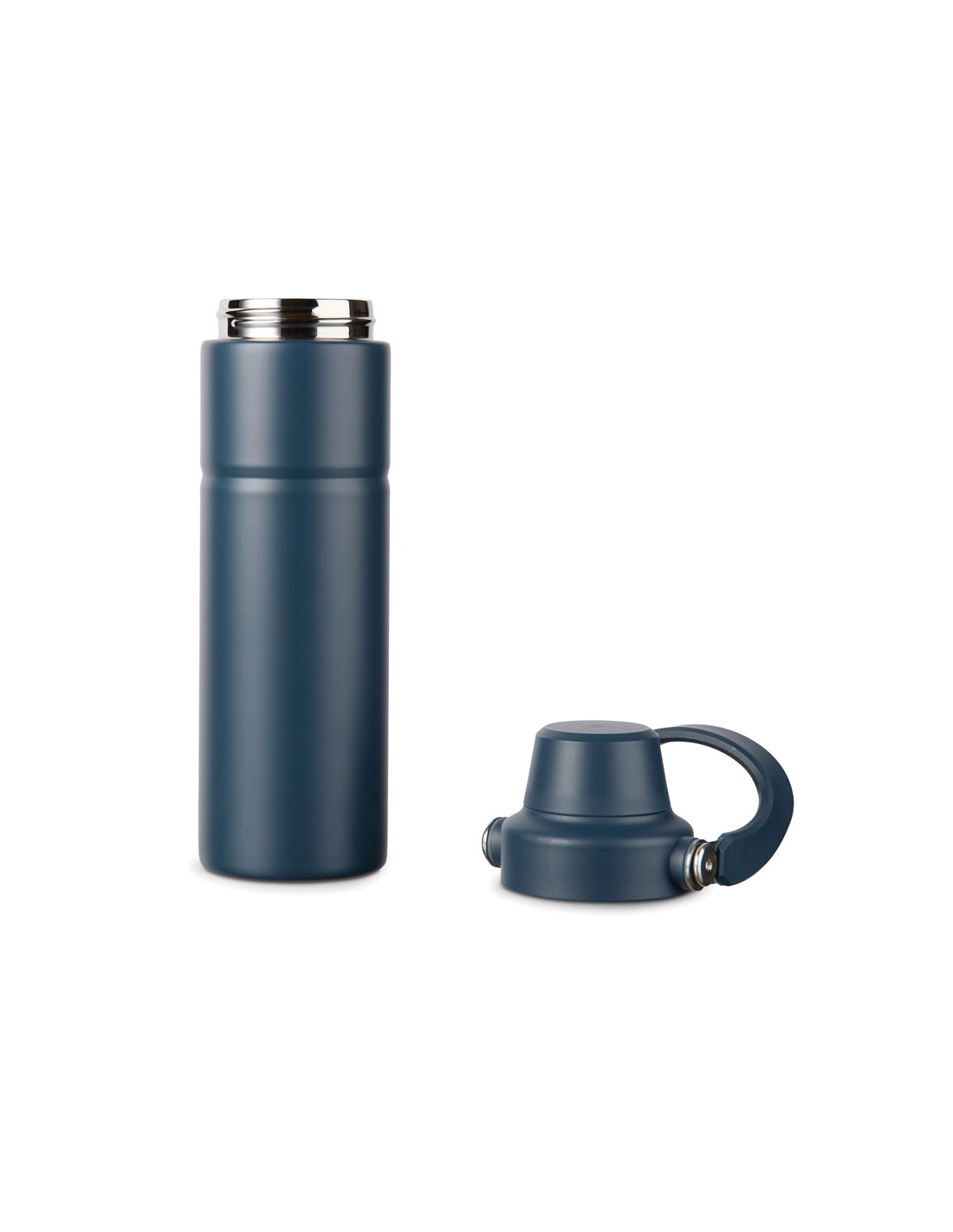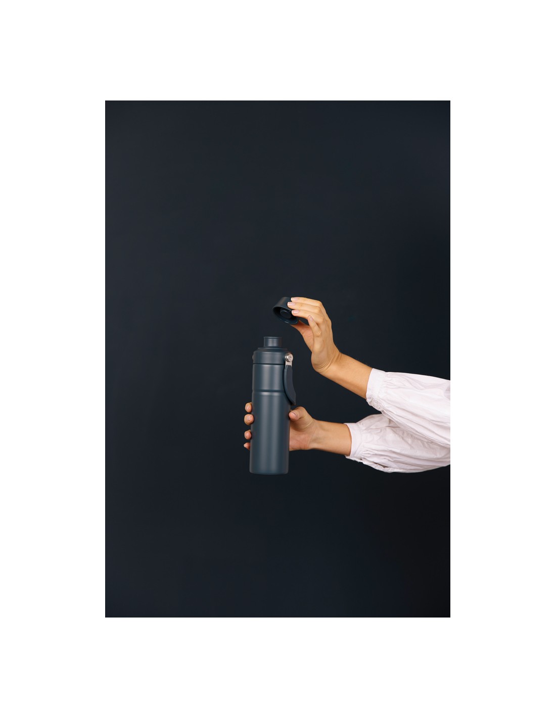 Una bottiglia a doppia parete sottovuoto, moderna e resistente, realizzata in acciaio inossidabile riciclato. Perfettamente progettata per la funzionalità, con una comoda maniglia, questa bottiglia è ideale per l'avventura. Il coperchio è dotato di due aperture: una superiore per sorseggiare facilmente e un'apertura più grande che permette di riempirla e di pulirla rapidamente. L'isolamento a doppia parete mantiene la bevanda fredda fino a 12 ore e calda fino a 4 ore, rinfrescandovi durante il viaggio. Non va in lavastoviglie o nel microonde, lavare solo a mano. La certificazione RCS (Recycled Claim Standard) garantisce che l'intera catena di approvvigionamento dei materiali riciclati sia certificata. Il contenuto totale di materiale riciclato si basa sul peso totale del prodotto. Questo prodotto contiene il 65% di acciaio inossidabile riciclato certificato RCS.