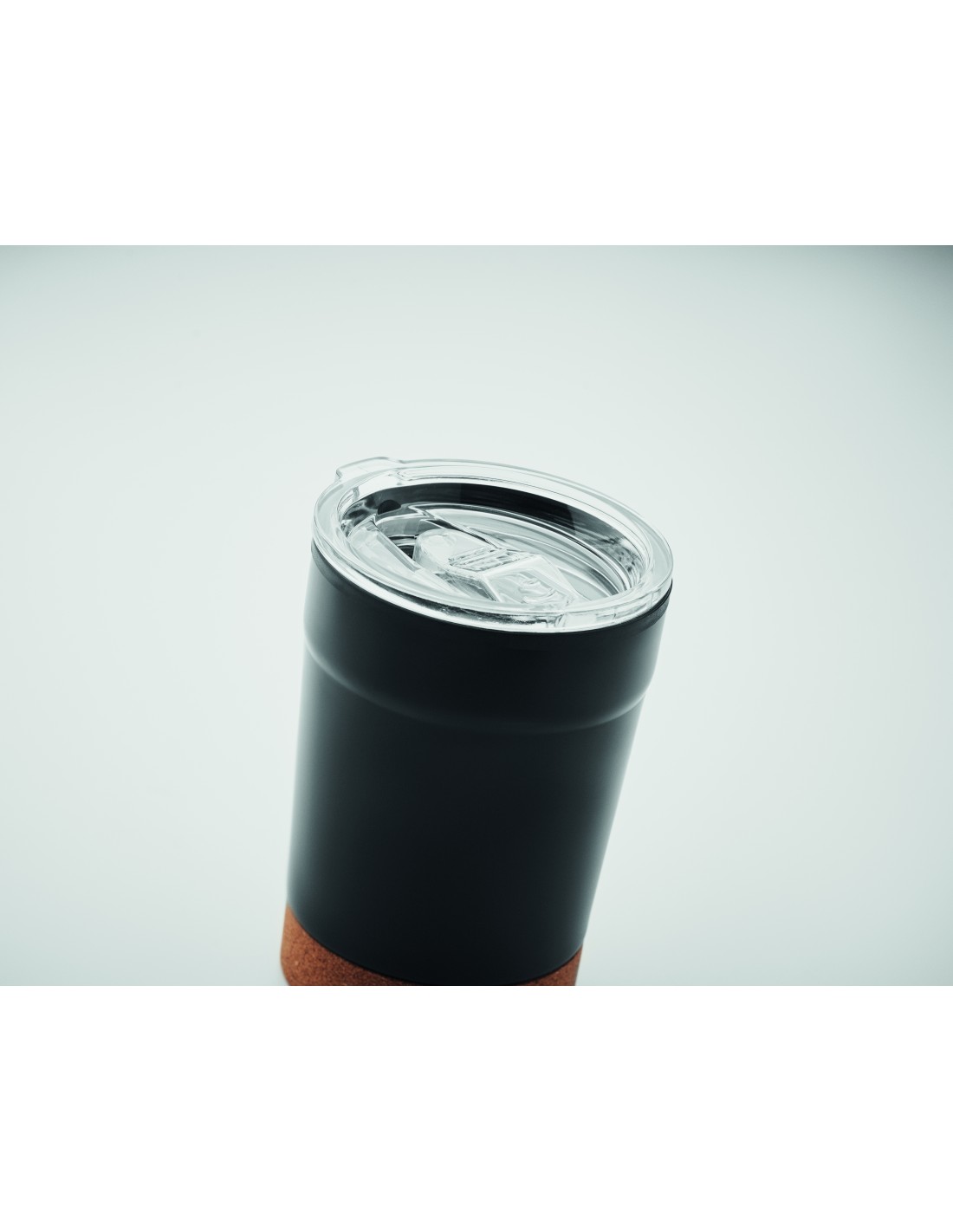Bicchiere doppio strato in acciaio inox e interno in PP con base in sughero e foro di imboccatura scorrevole. Senza perdite. Capacità: 300 ml.