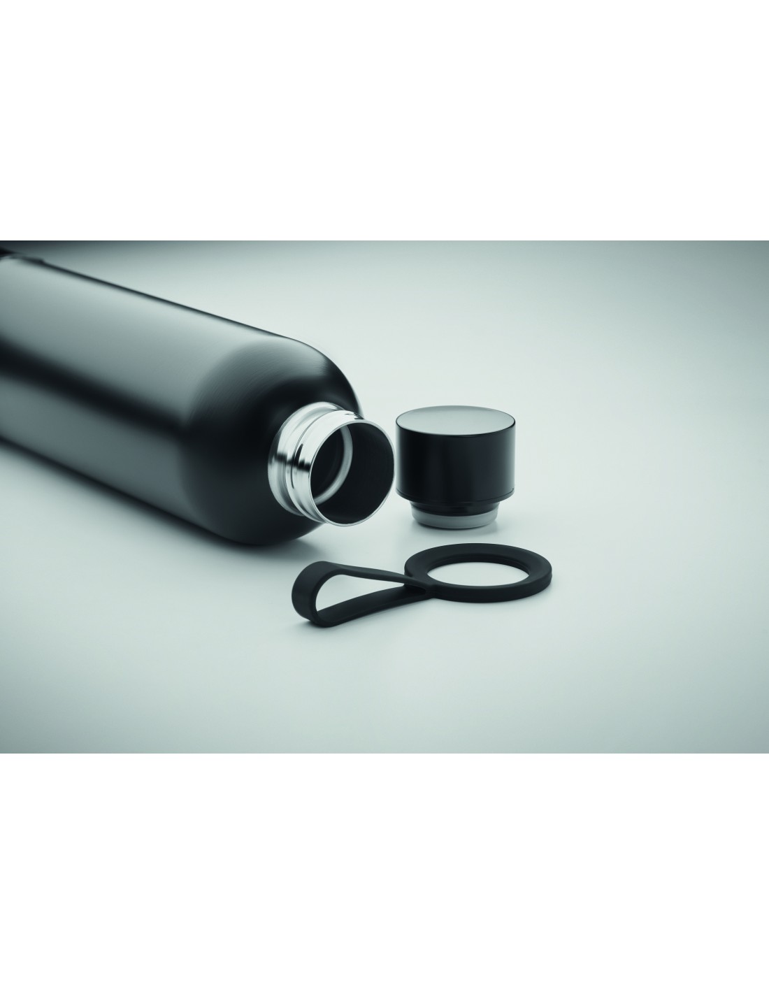 Borraccia a doppio strato in acciaio inox verniciato a polvere con coperchio in PP e tracolla in PU. Si può bere dal beccuccio o dal foro sul bordo del bicchiere. Senza perdite. Capacità: 700 ml.