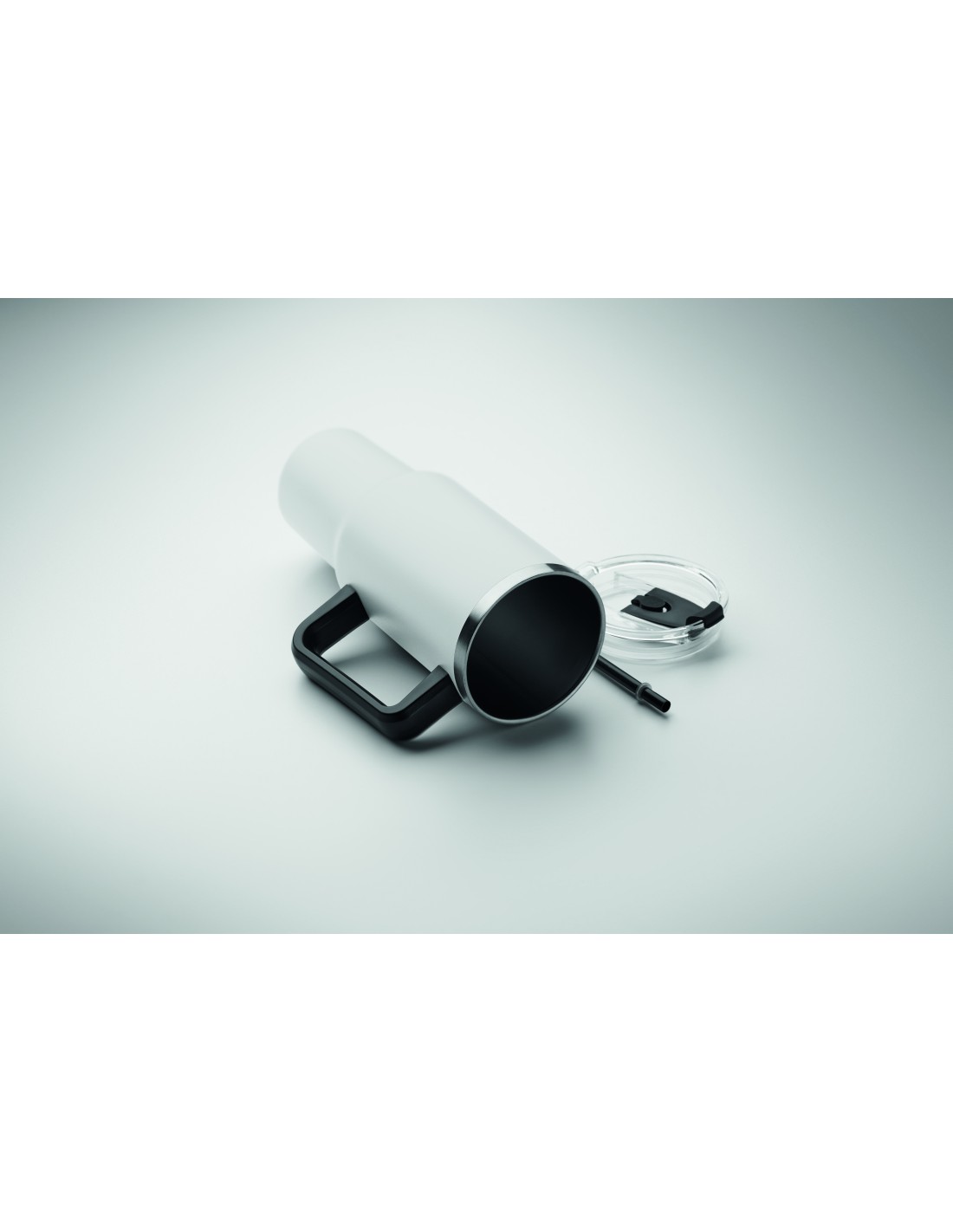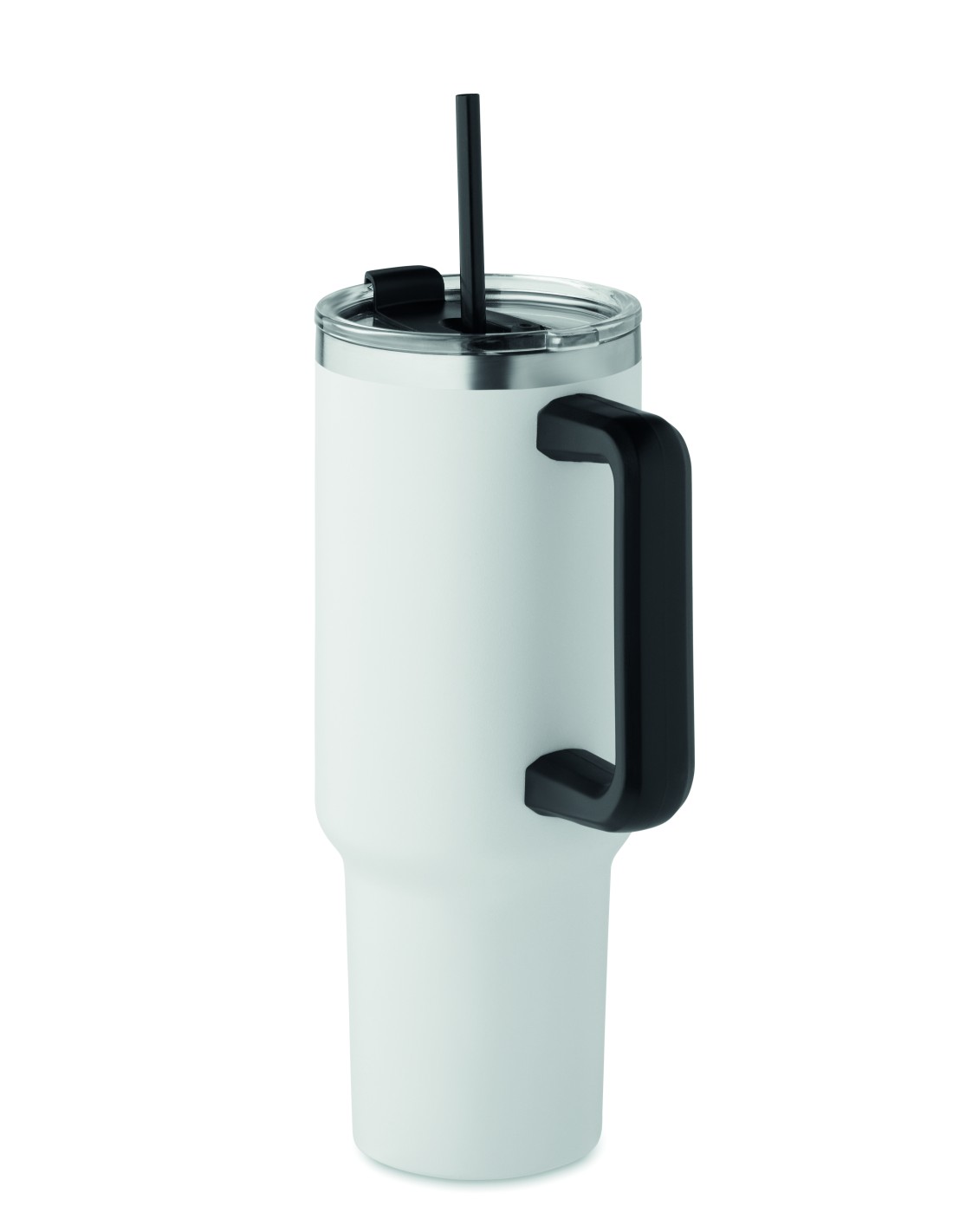 Bicchiere a doppio strato in acciaio inossidabile riciclato con coperchio in cannuccia inclusa cannuccia in PE. Capacità 1200 ml. (90% acciaio inox riciclato e 10% acciaio inox).