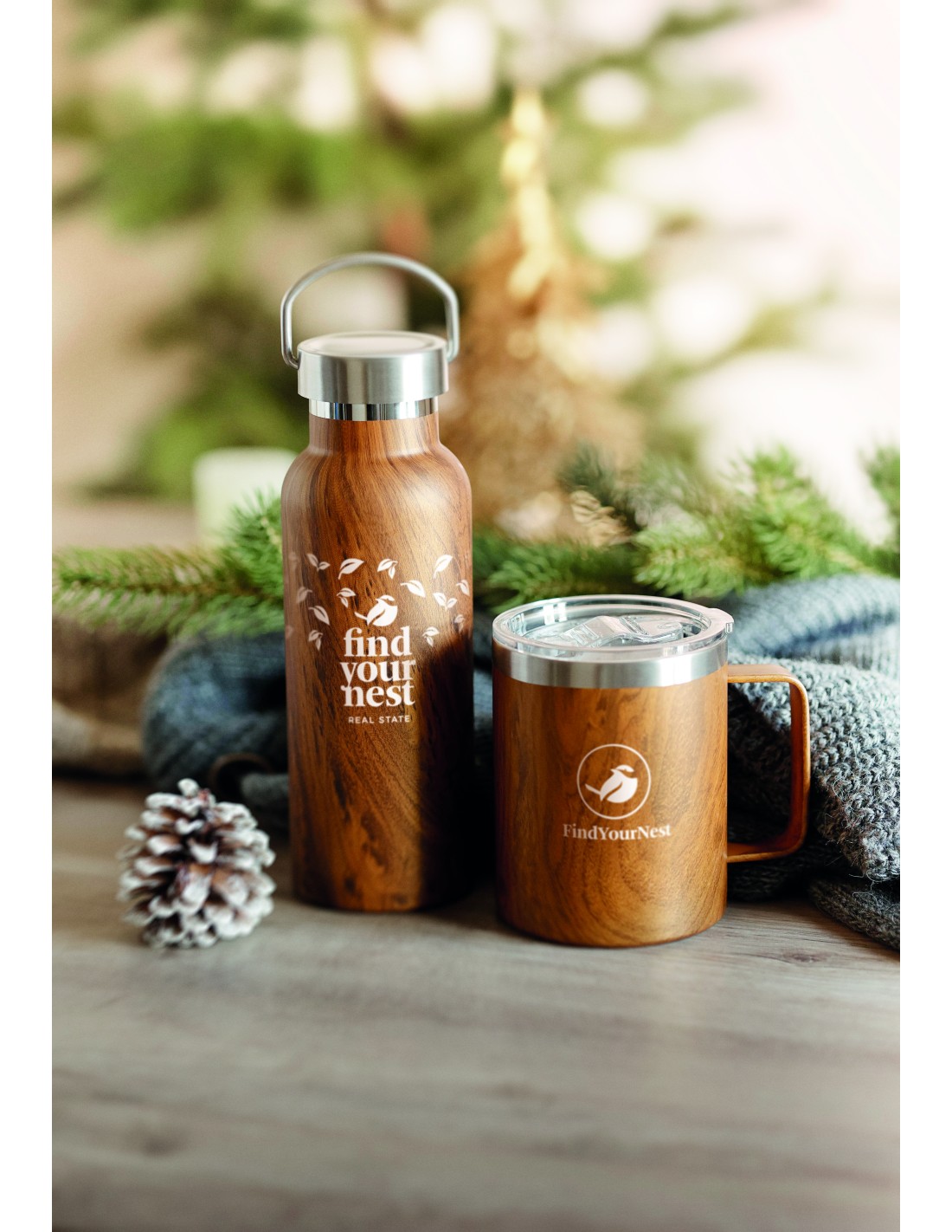Bicchiere doppio strato in acciaio inox e interno in PP con base in sughero e foro di imboccatura scorrevole. Senza perdite. Capacità: 300 ml.