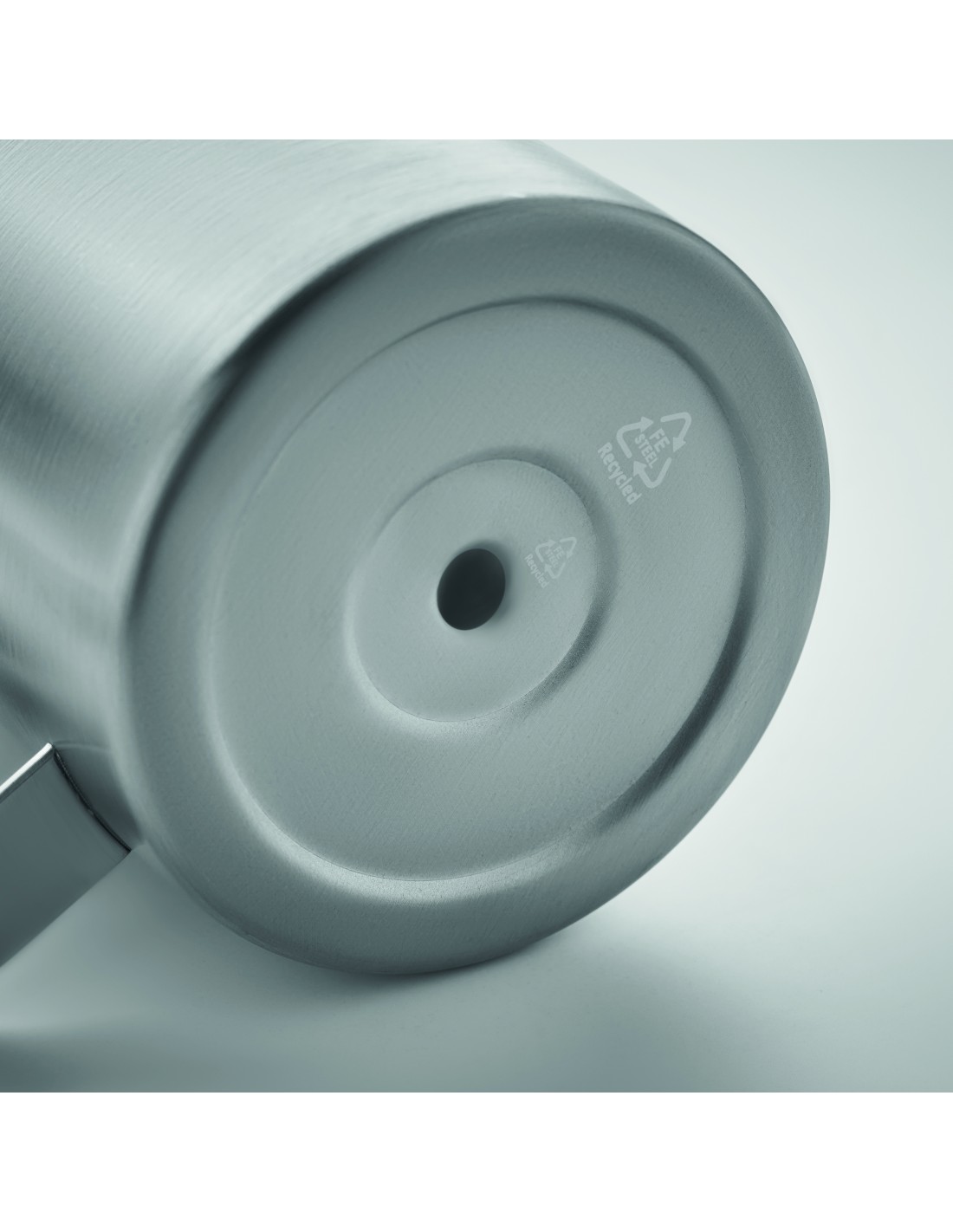 Tazza a doppio strato in acciaio inox riciclato (90% acciaio inox riciclato e 10% acciaio inox) con coperchio scorrevole. Capacità: 300 ml.