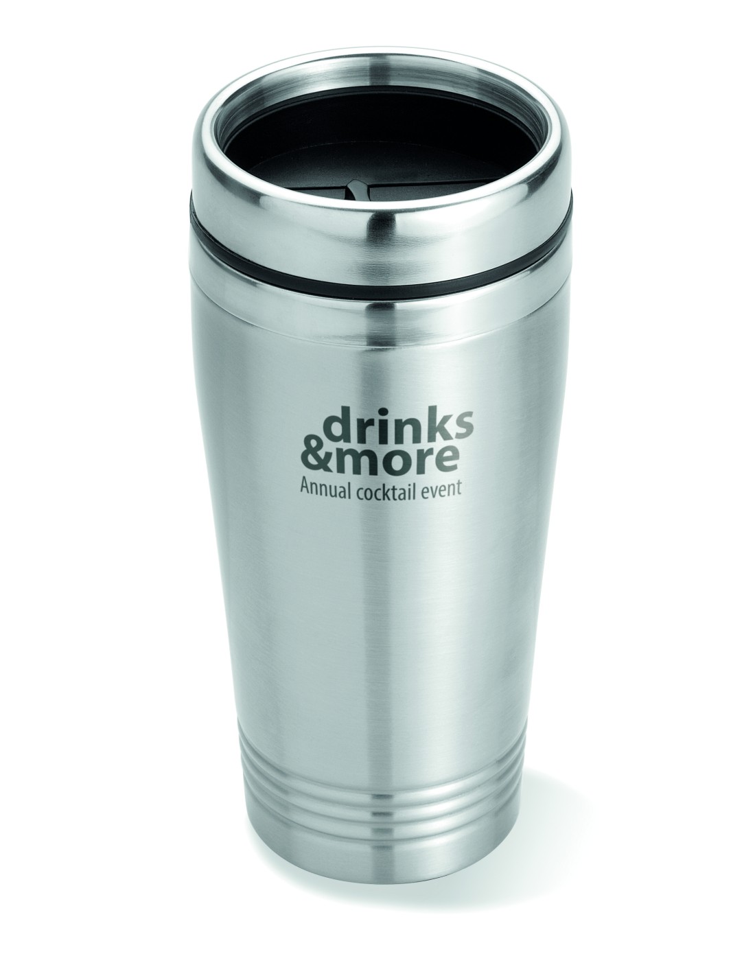 Thermos in acciaio con doppia parete con tappo in PP nero. 400ml.