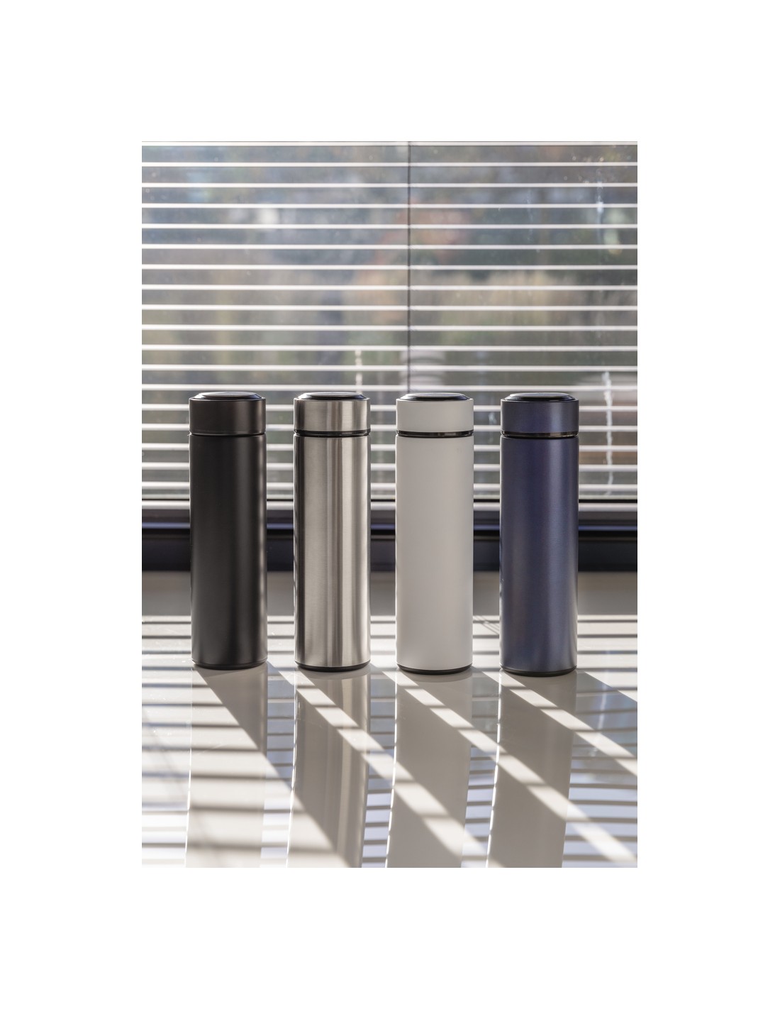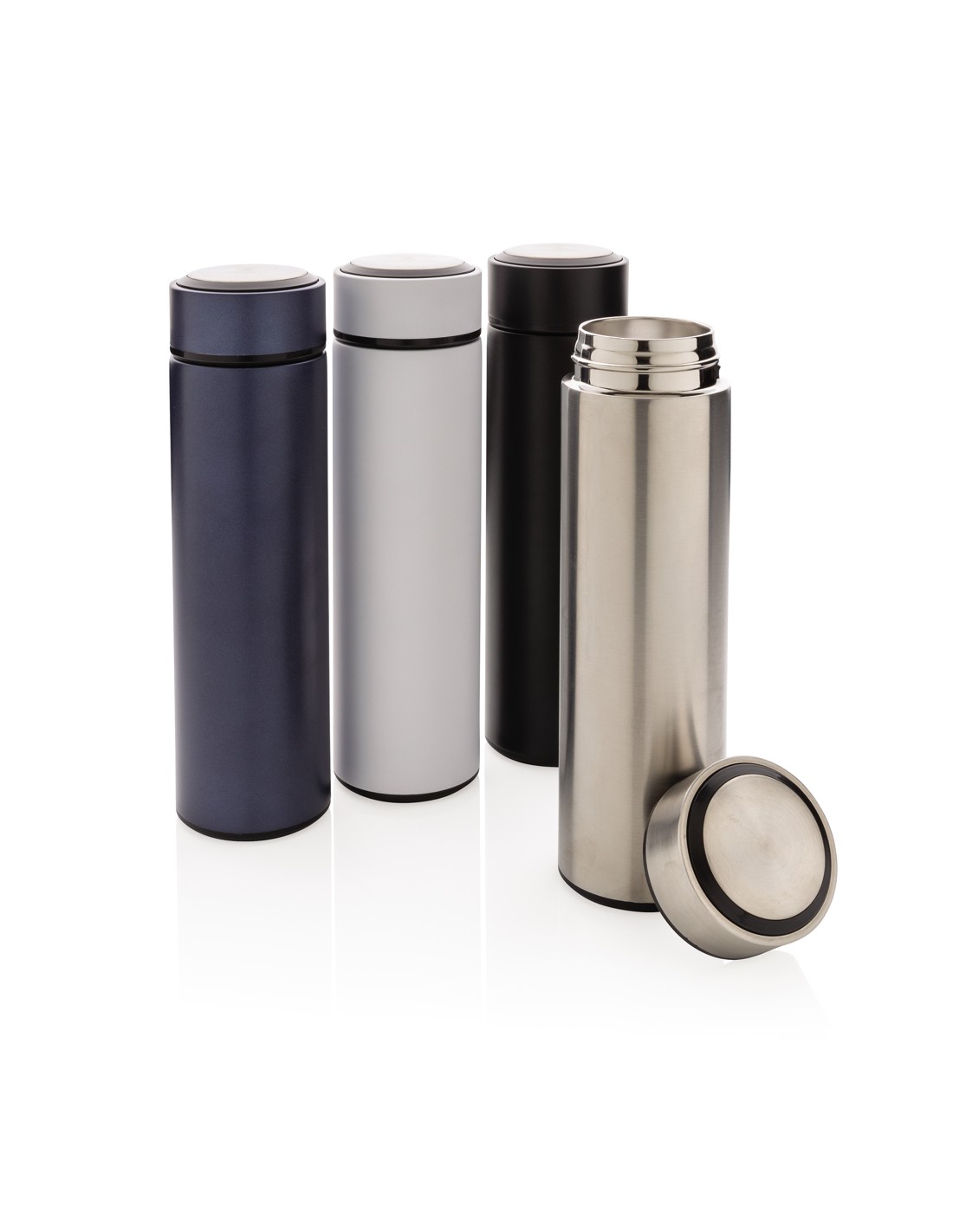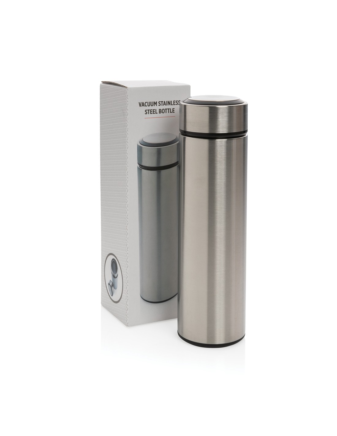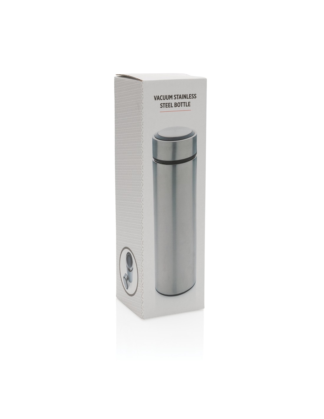 Conserva il tuo caffé o il tuo te buono e fragrante grazie a questa bottiglia in acciaio inossidabile con tappo in metallo spazzolato. La bottiglia include un tappo a vite e permette di bere da qualsiasi angolazione. La grande apertura superiore facilita la pulizia. Capacità 450ml. Senza BPA.