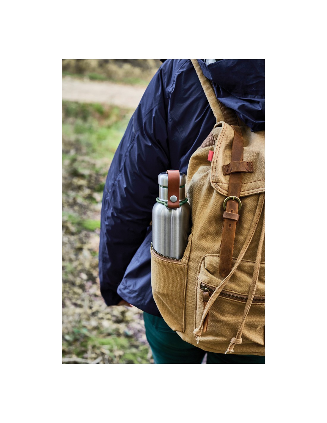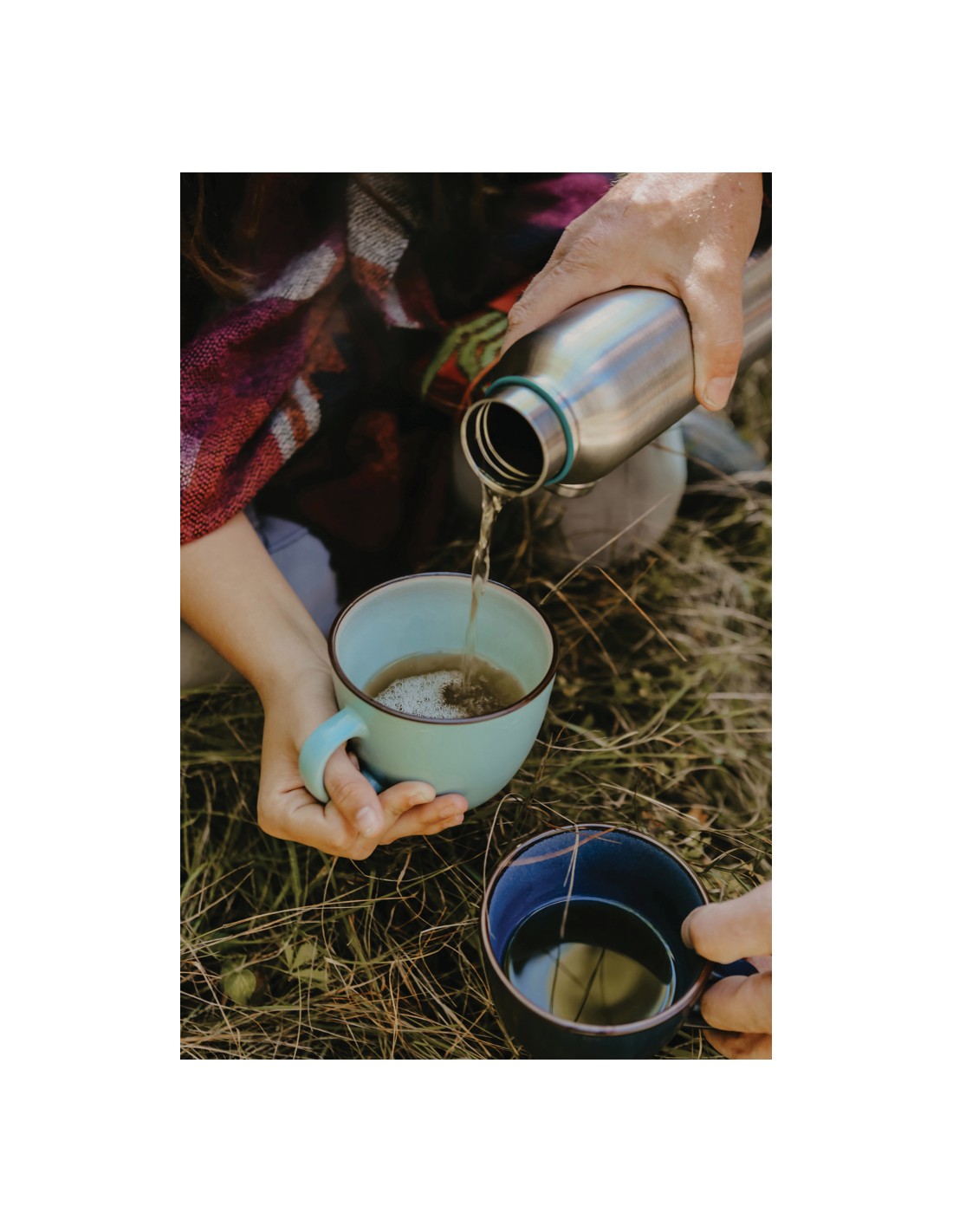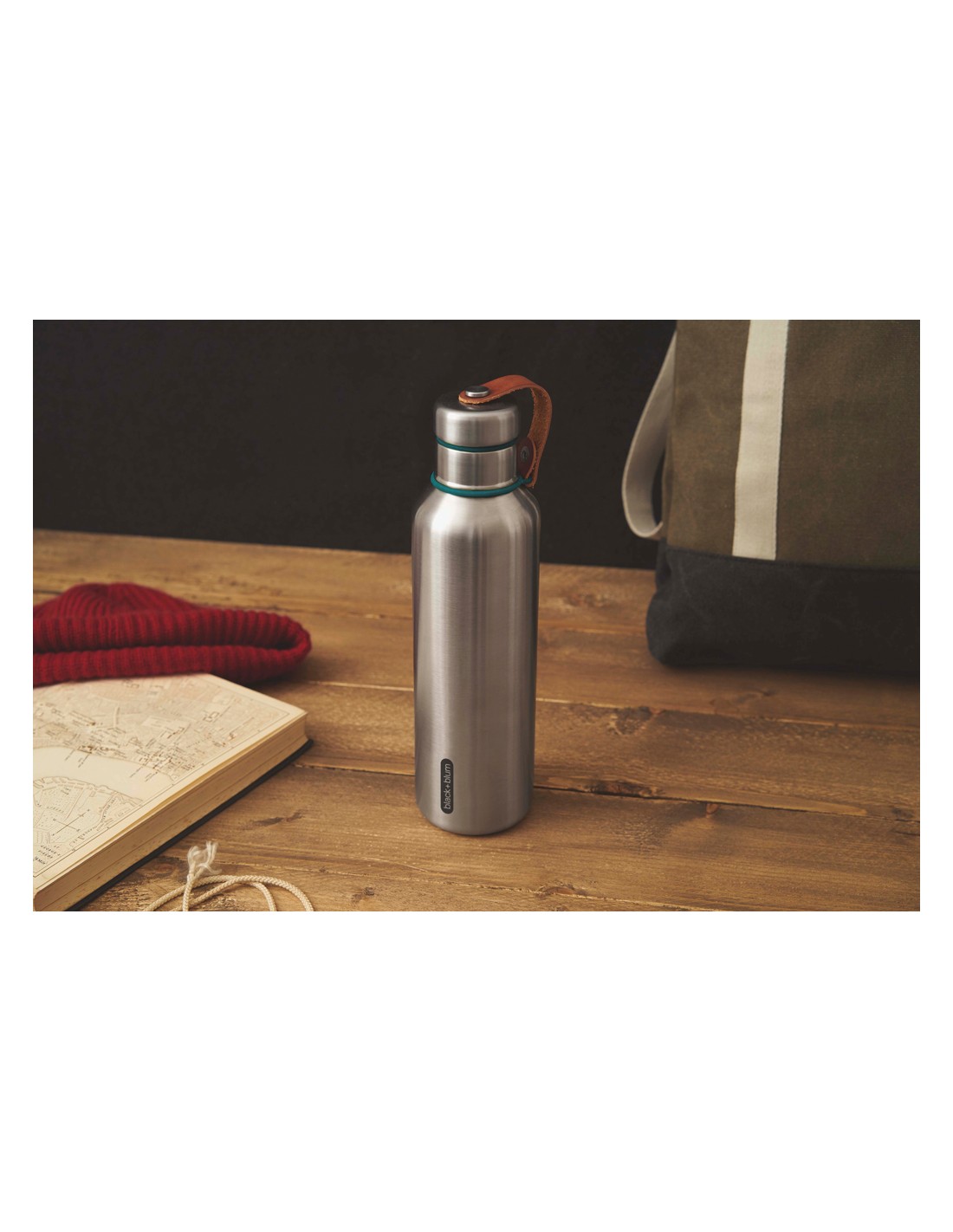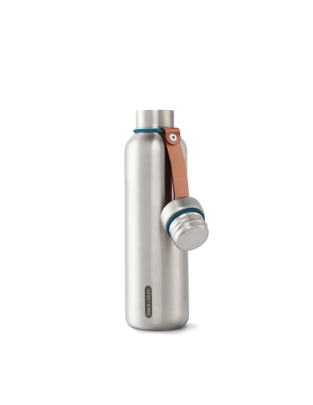 Bottiglia termica in acciaio inossidabile sigillata sottovuoto che mantiene le bevande fredde per 24 ore o calde per 12 ore. Anche il tappo è completamente in acciaio inossidabile, il che significa che l'acqua non entra in contatto con la plastica. Il laccio in finta pelle funge da passante per il trasporto e da dettaglio di design. Lavaggio solo a mano.