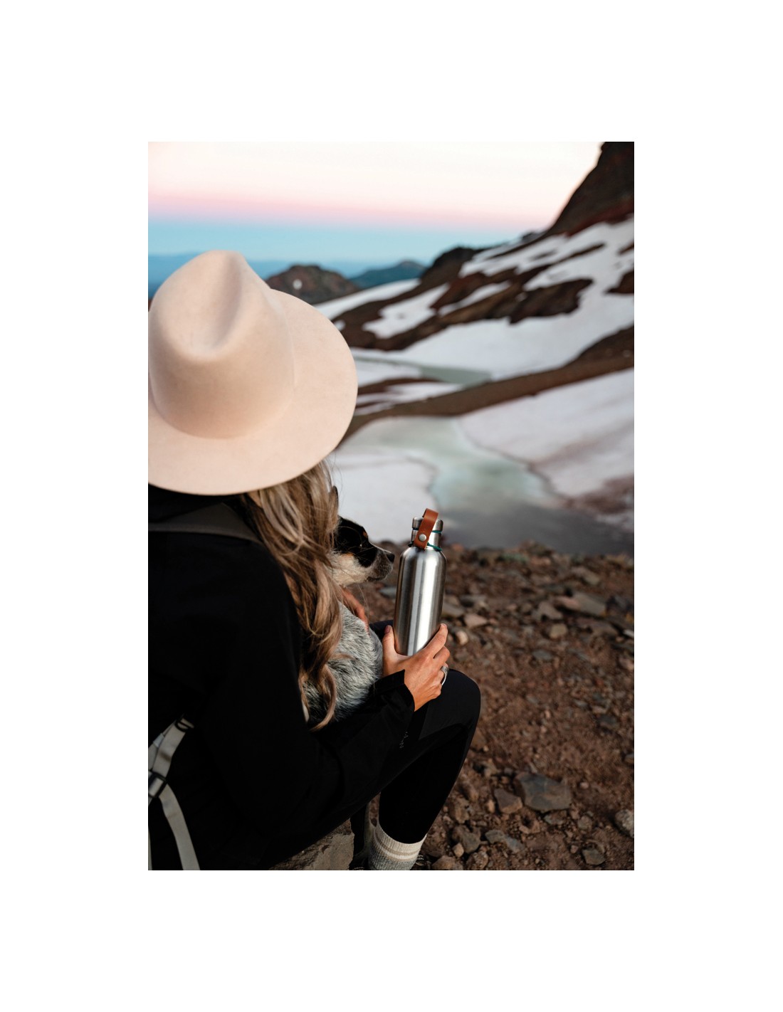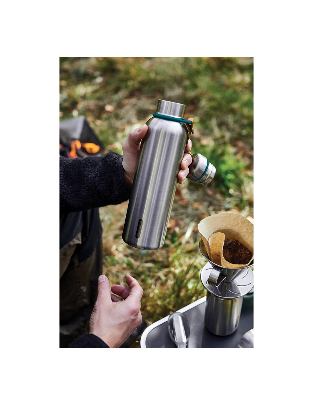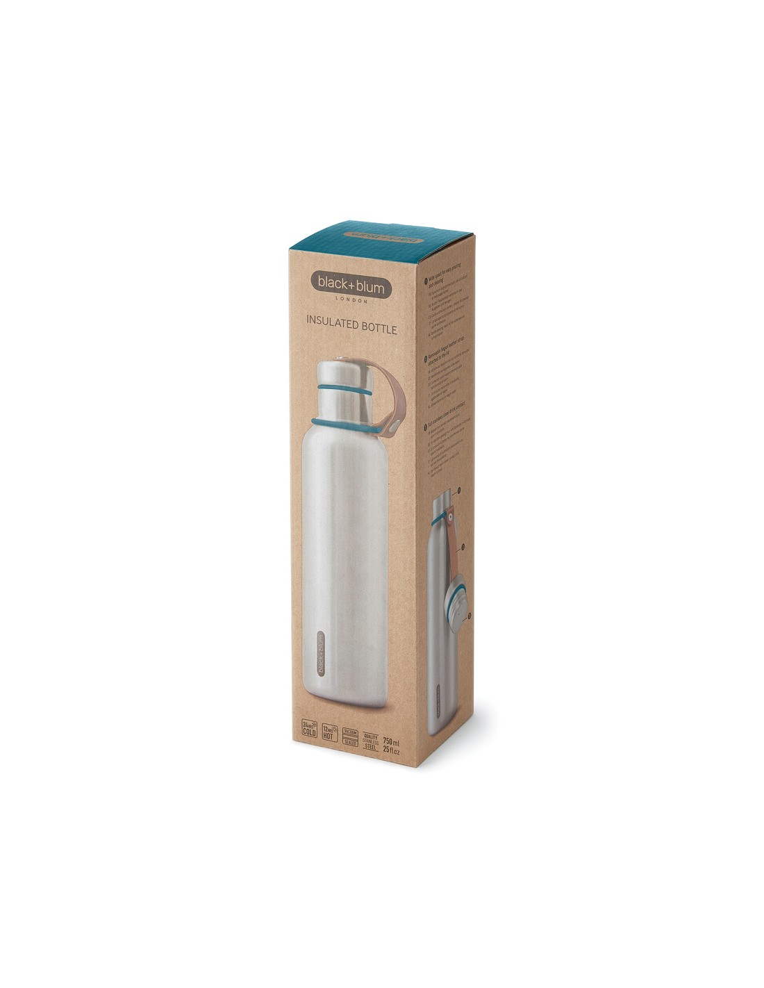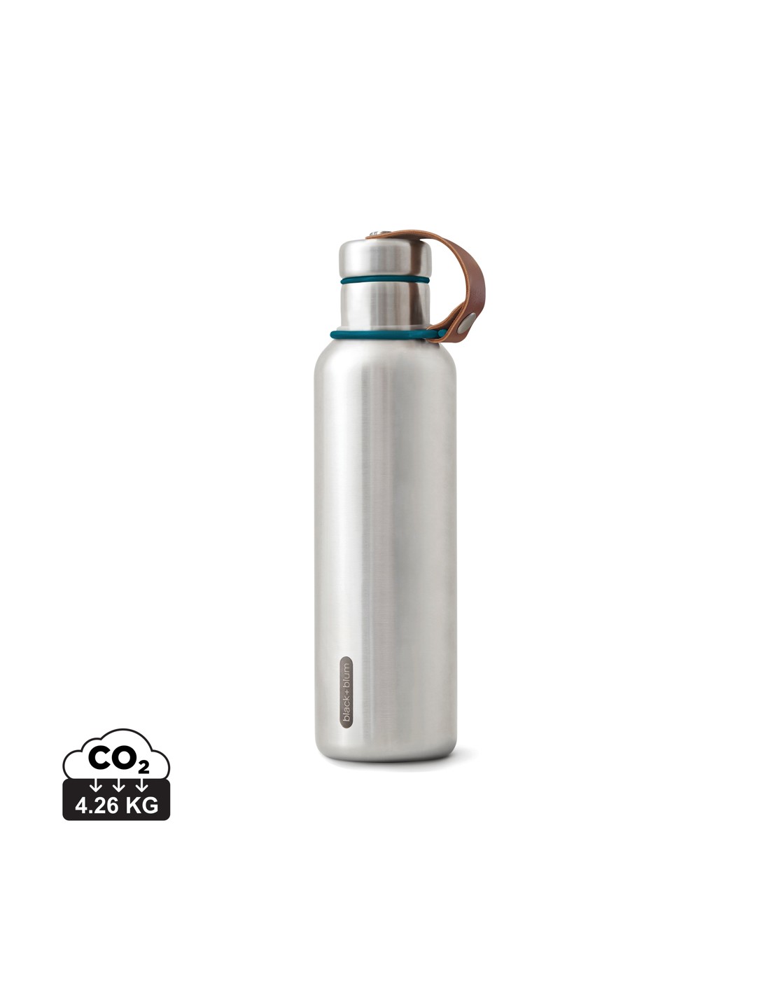 Bottiglia termica in acciaio inossidabile sigillata sottovuoto che mantiene le bevande fredde per 24 ore o calde per 12 ore. Anche il tappo è completamente in acciaio inossidabile, il che significa che l'acqua non entra in contatto con la plastica. Il laccio in finta pelle funge da passante per il trasporto e da dettaglio di design. Lavaggio solo a mano.