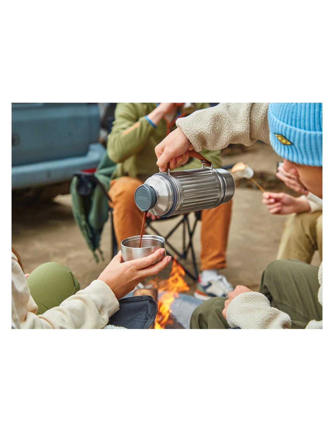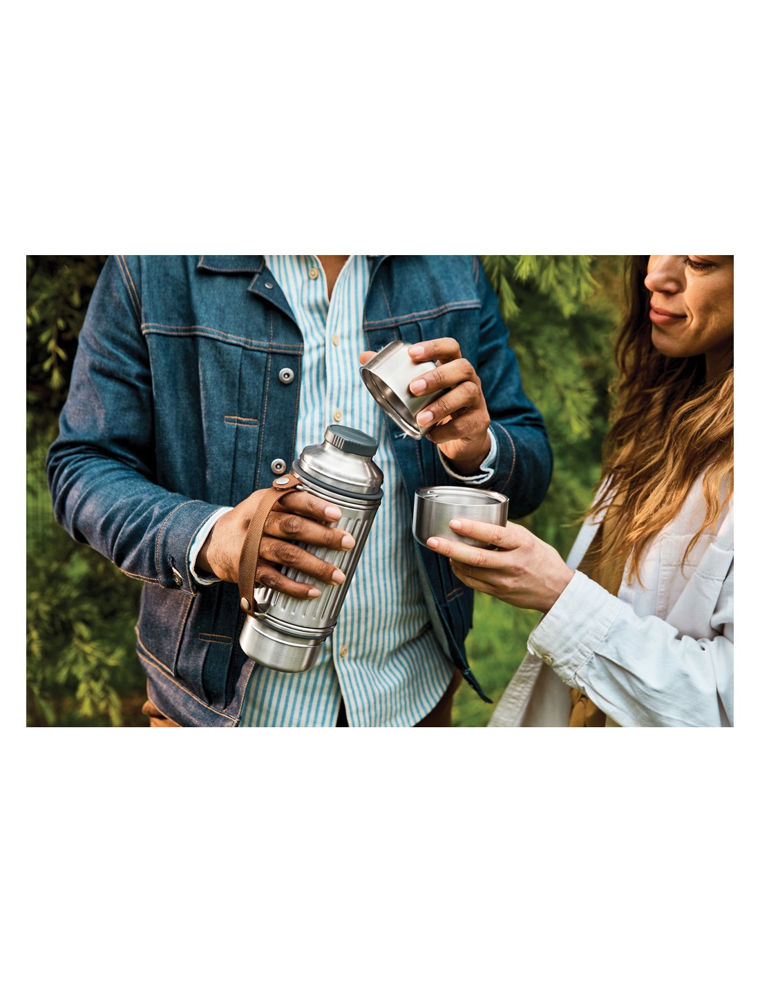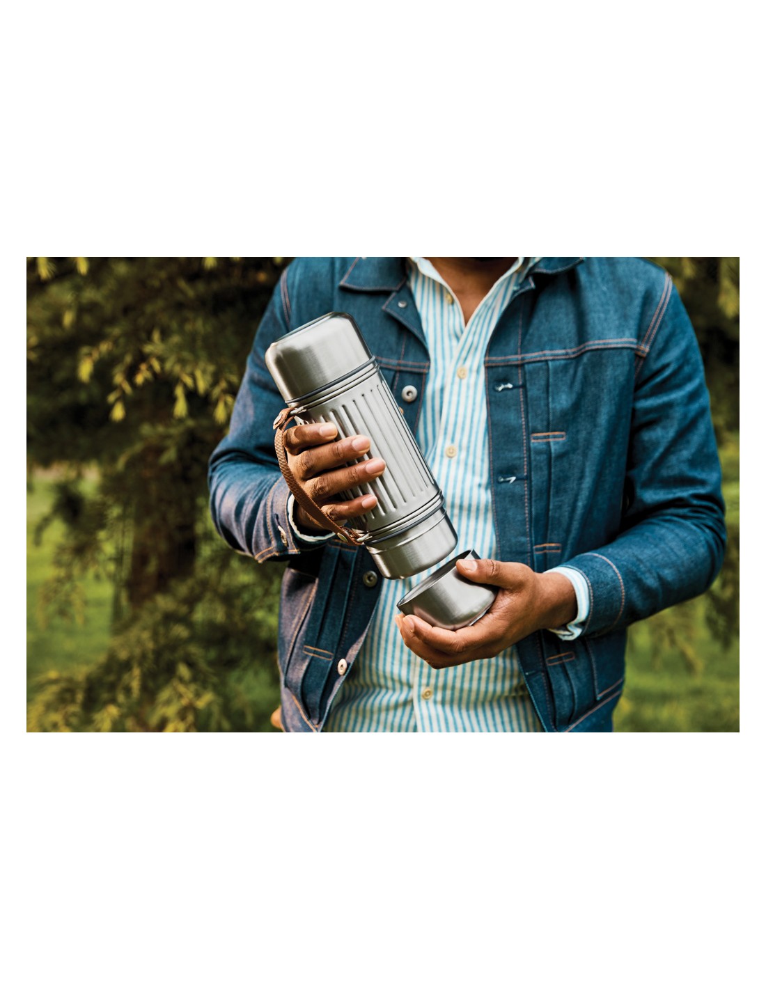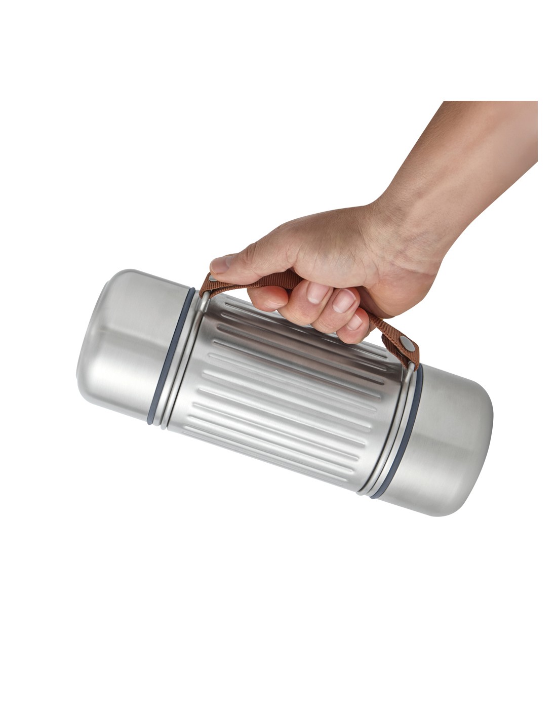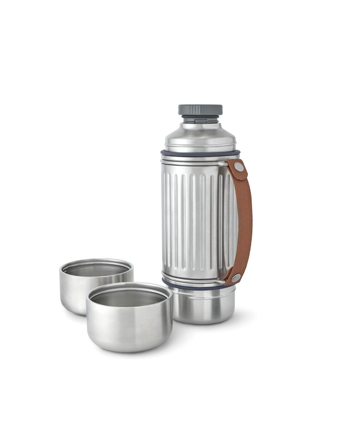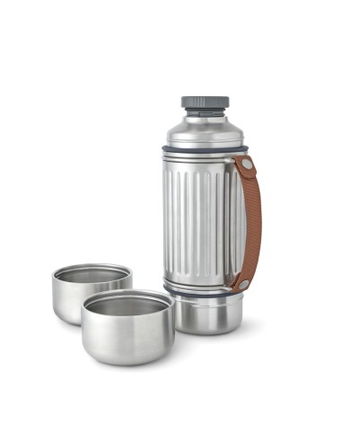 Realizzata per ogni tipo di avventura, questa bottiglia termica in acciaio inossidabile da 1 litro con isolamento sottovuoto è perfetto per le giornate in escursione, per rilassarsi in spiaggia o per affrontare le piste da sci. Grazie alla sua struttura rinforzata ed al design resistente, mantiene le bevande calde o fredde fino a 24 ore. È completamente a prova di perdite e dispone di un tappo in acciaio con meccanismo di versamento facile, oltre a due tazze in acciaio inossidabile a doppia parete per condividere le bevande. L'ampia base di ciascun bicchiere garantisce una maggiore stabilità su terreni irregolari, mentre la robusta tracolla in nylon la rende facile da trasportare. Una guarnizione in silicone impedisce le perdite quando i bicchieri sono riposti. Va in lavastoviglie una volta rimossa la tracolla.