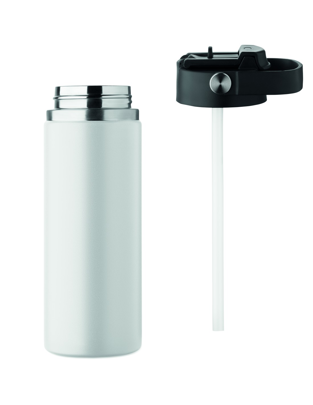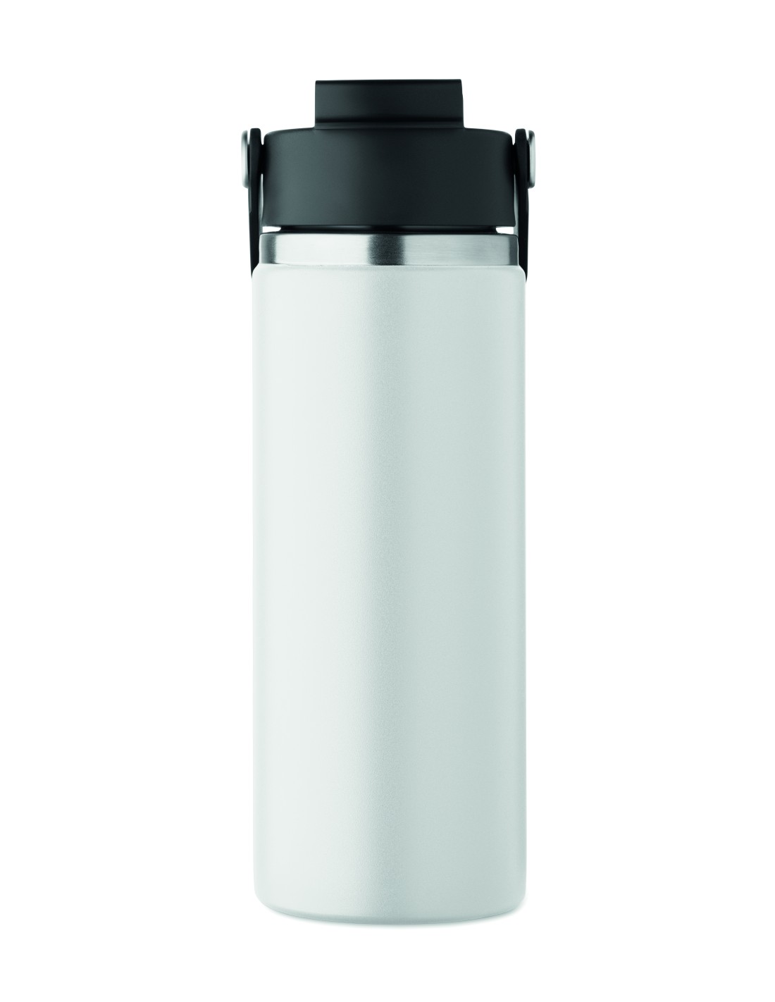 Bottiglia isolante a doppio strato in acciaio inox riciclato (90% acciaio inox riciclato e 10% acciaio inox) con manico laterale. Con coperchio in PP e tazza in acciaio inox riciclato. Senza perdite. Capacità: 1L.