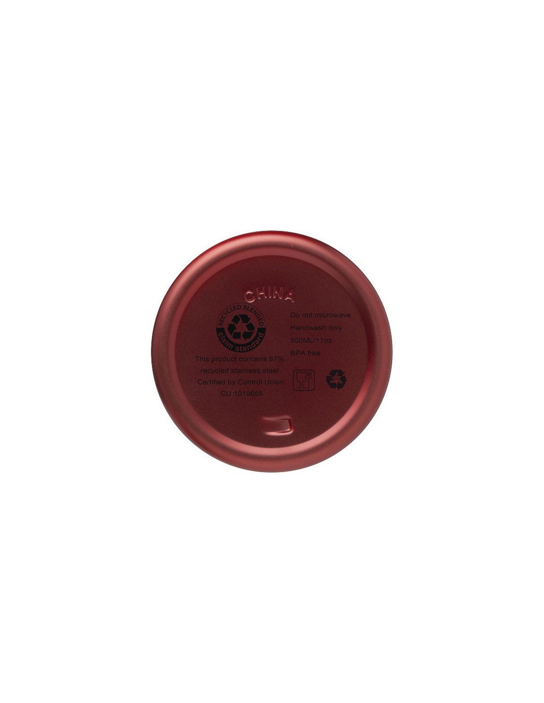 Bottiglia isolante a doppio strato in acciaio inox riciclato (90% riciclato e 10% acciaio inox), manico per trasporto in silicone con speaker wireless da 3W removibile. 500 ml. Batteria: 500 mAh. Rimuovere lo speaker per la pulizia.