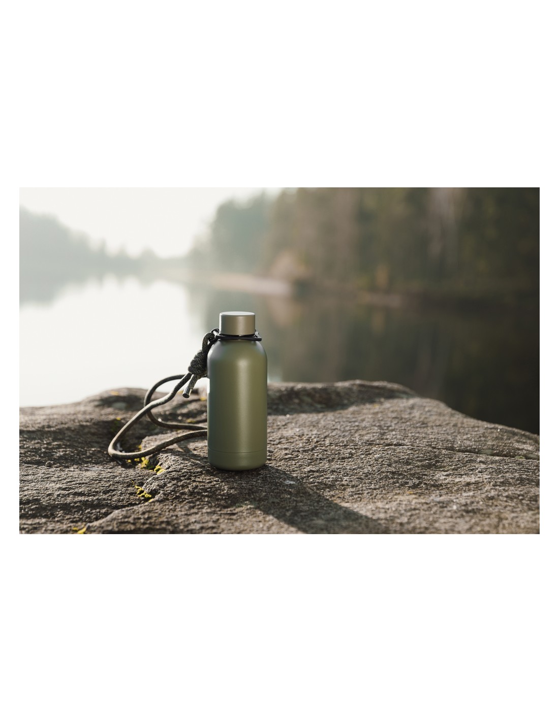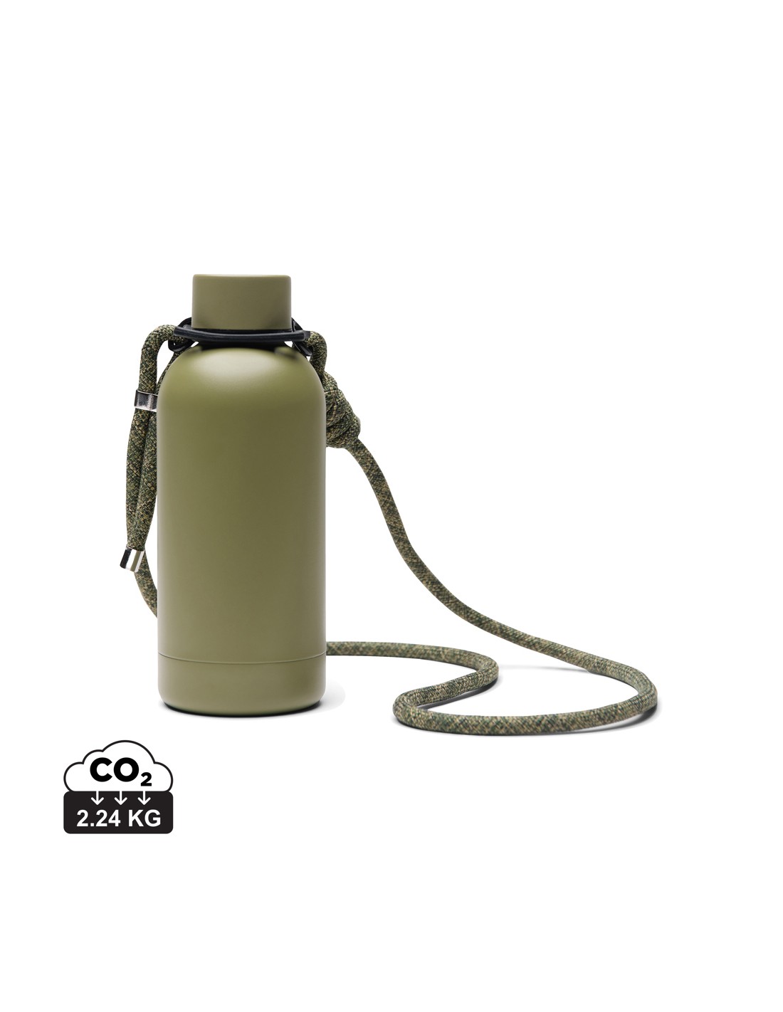 Pronta per ogni percorso, questa bottiglia in acciaio inossidabile è pensata per uno stile di vita attivo. A doppia parete è progettata per mantenere le bevande fresche fino a 12 ore e calde fino a 6 ore. È dotata di una pratica tracolla rimovibile e regolabile che la rende facile da trasportare, sia che tu sia in città, in escursione in montagna o in partenza per una giornata all'insegna dell'avventura. Non è lavabile in lavastoviglie né utilizzabile nel microonde, solo a mano. Capacità 400 ml. Certificato da RCS (Recycled Claim Standard), la certificazione RCS garantisce che l'intera catena di approvvigionamento dei materiali riciclati sia certificata. Il contenuto totale riciclato si basa sul peso complessivo del prodotto. Questo prodotto contiene il 72% di acciaio inossidabile riciclato certificato RCS.