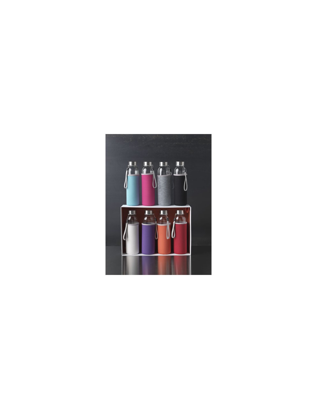 Borraccia in vetro a parete singola con tappo a vite. Il tappo è dotato di un cinturino per un facile trasporto. Custodia in neoprene. Perfetta per bevande fredde. Non congelare, non mettere nel microonde. Capacità di 500 ml. Fornito in confezione regalo.