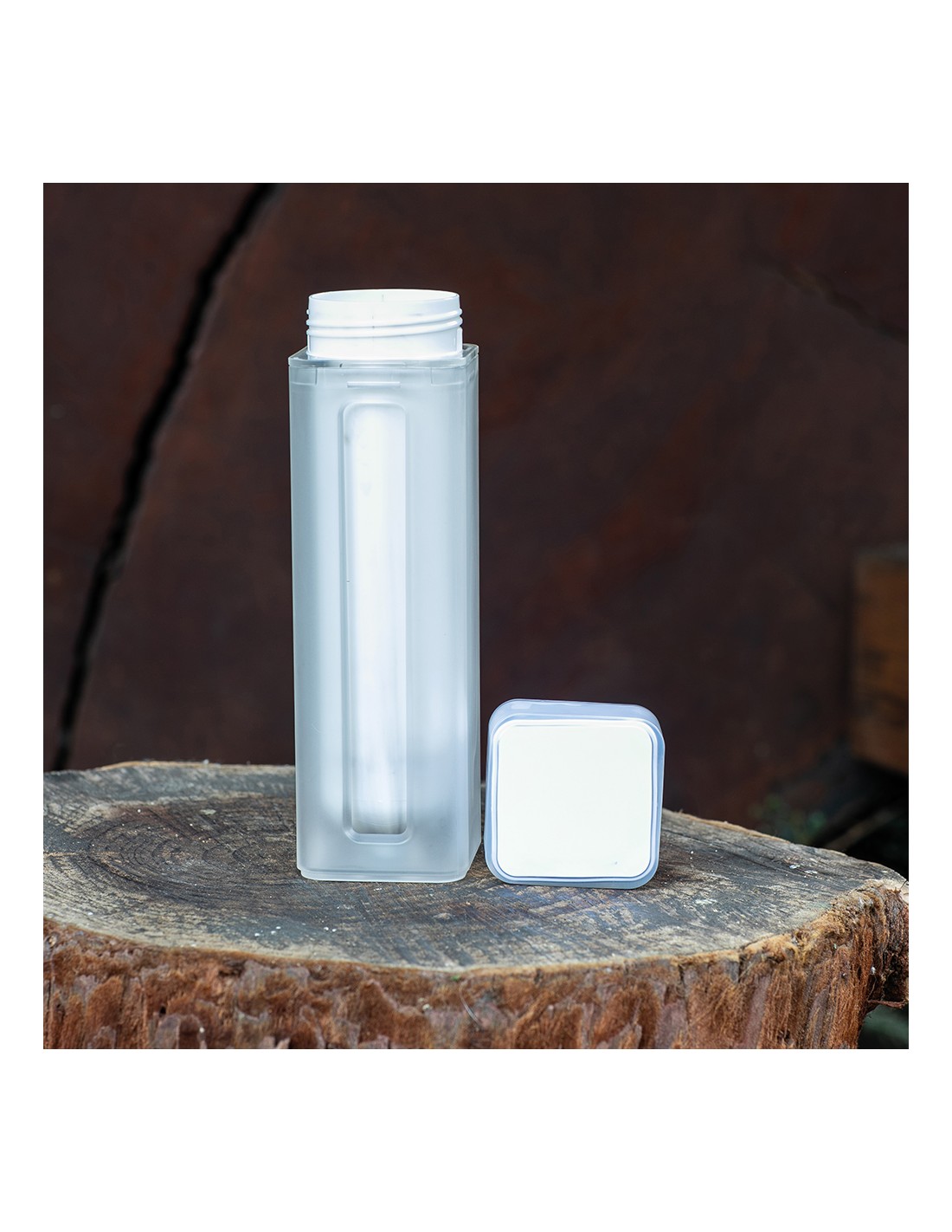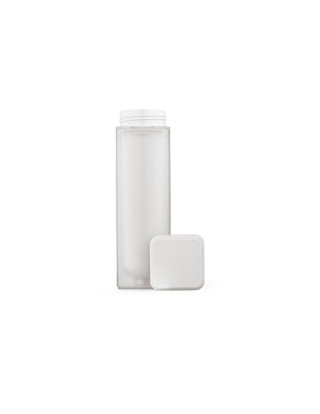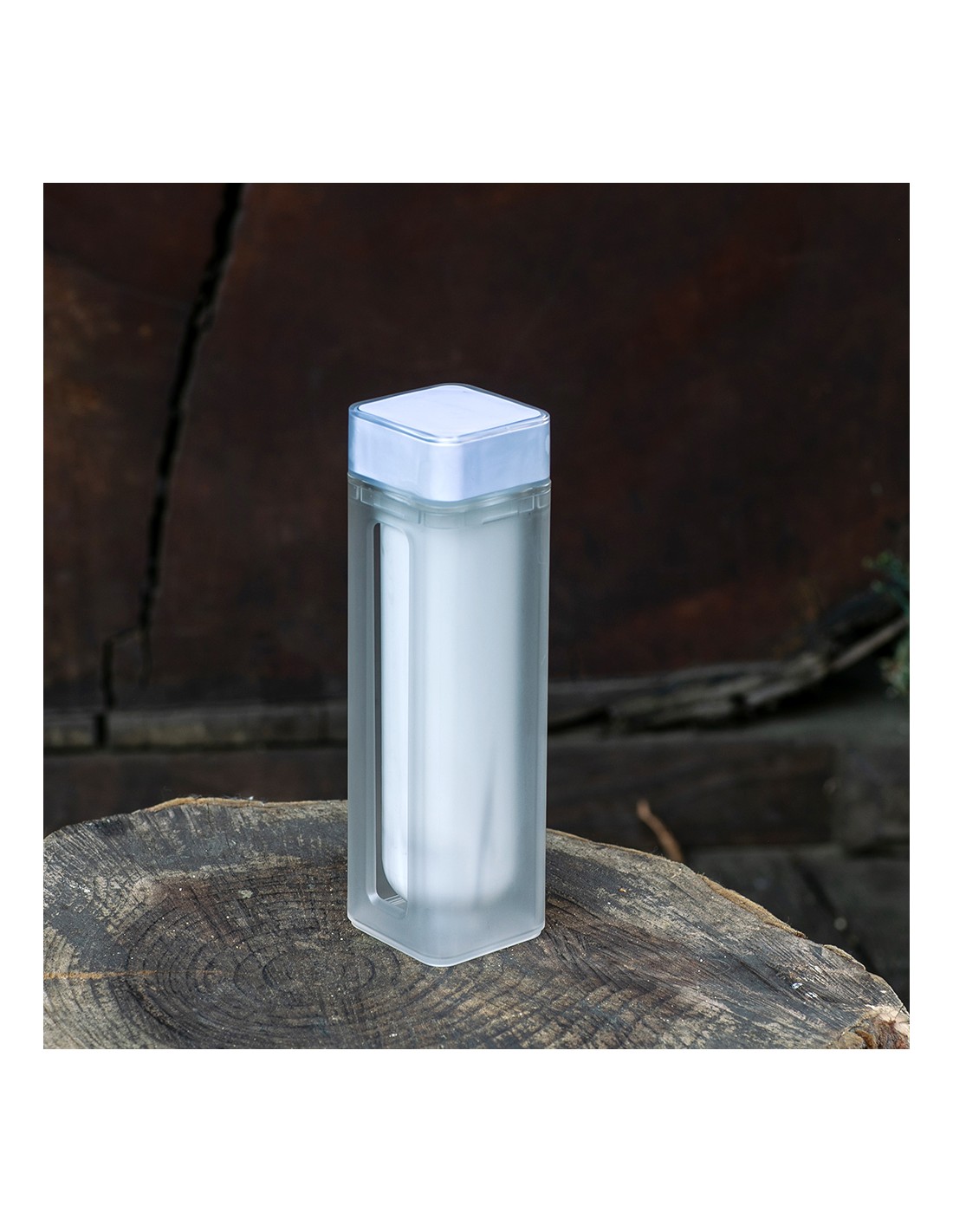 Borraccia Lucen 540 ml (500 ml netti) in plastica riciclata ABS e PBT con doppio stampaggio a iniezione. Design unico twist-and-lock. La bottiglia interna può essere stampata a colori pieni 360º con tecnologia digitale UV, rendendo il logo particolarmente evidente. Tutto confezionato in una scatola kraft individuale.