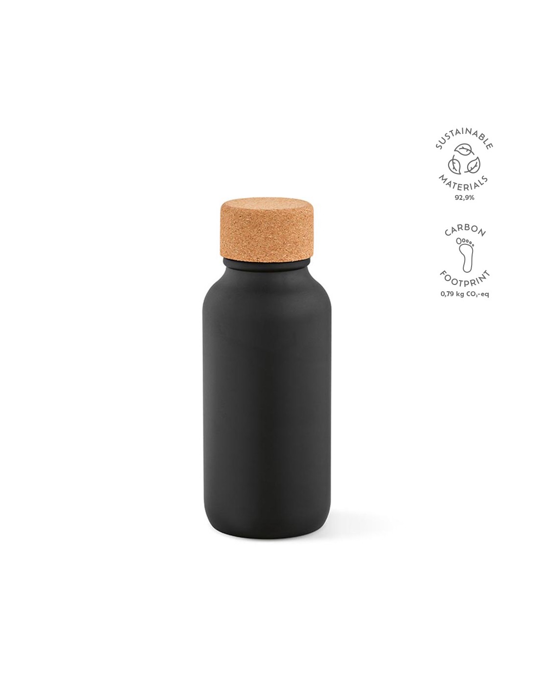 Borraccia riutilizzabile in plastica riciclata, con un elegante coperchio in bambù. La borraccia a parete singola è priva di BPA, è testata e approvata secondo la legislazione tedesca sulla sicurezza alimentare (LFGB). Testata e approvata per il contenuto di ftalati secondo il regolamento REACH....