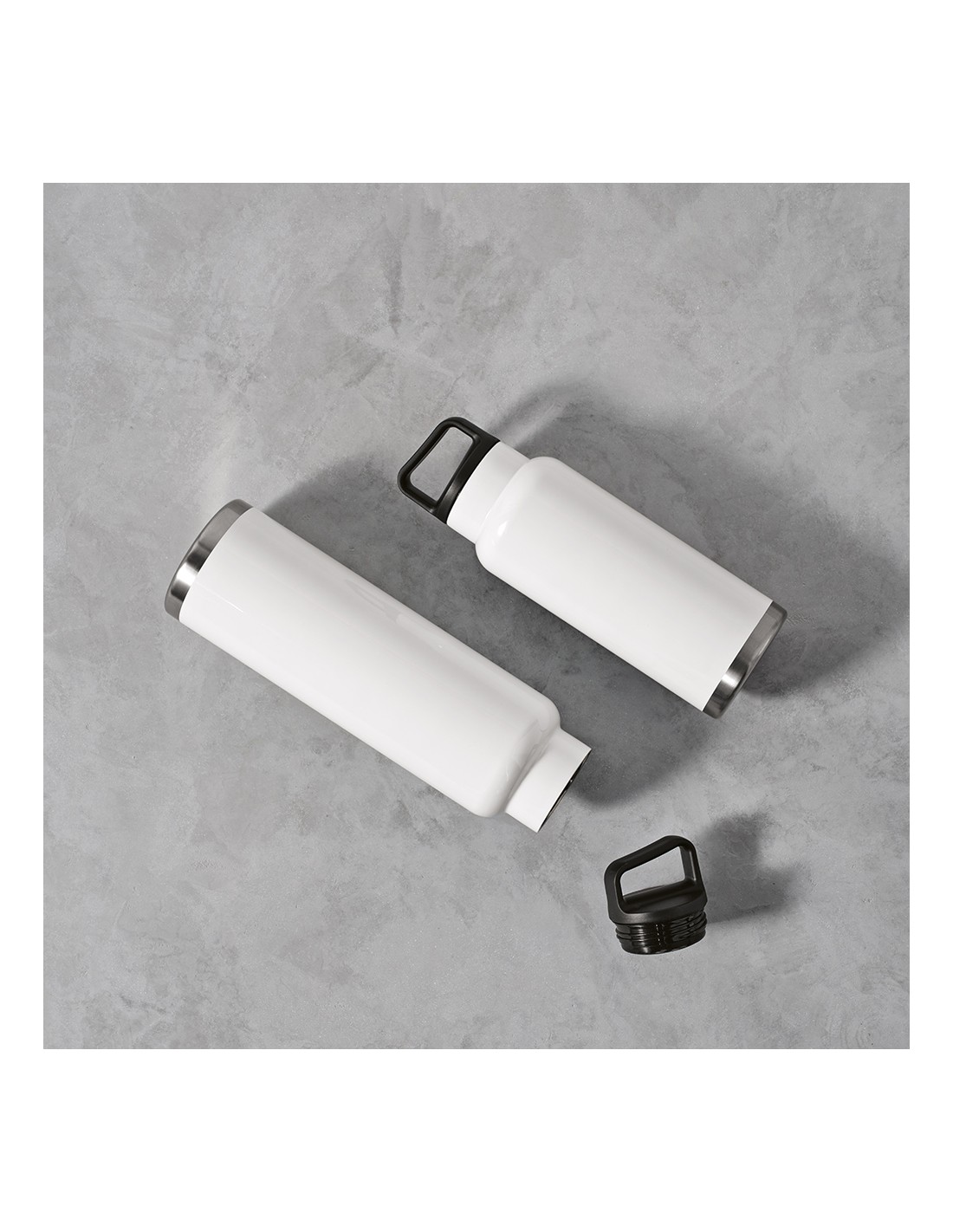 Borraccia Zambezi 1500W, capacità 1620ml (1500ml netti), realizzata in acciaio inossidabile riciclato. Progettata appositamente per la stampa a sublimazione a colori. L’isolamento a doppia parete mantiene le bevande calde per 18 ore e fredde per 54 ore. A tenuta stagna e dotata di manico sul coperchio per un trasporto agevole. Confezionata singolarmente in una scatola kraft.