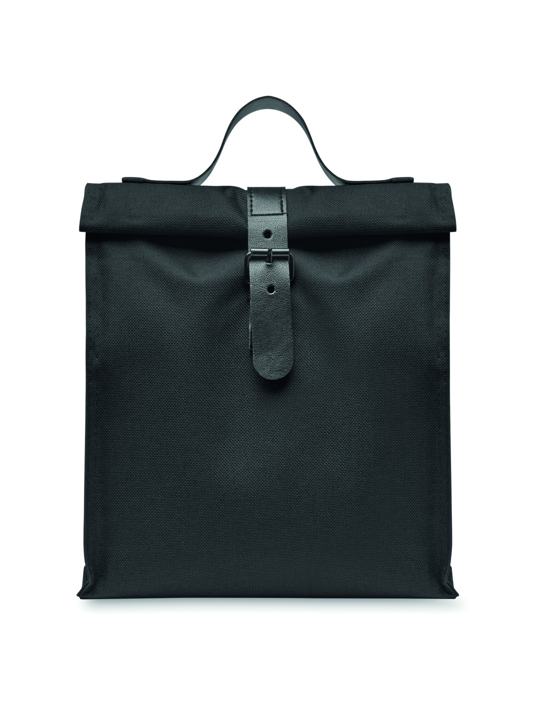 Borsa termica rolltop isolata in poliestere 600D RPET con maniglia e chiusura in PU. Isolamento: schiuma PE da 3 mm con PEVA.