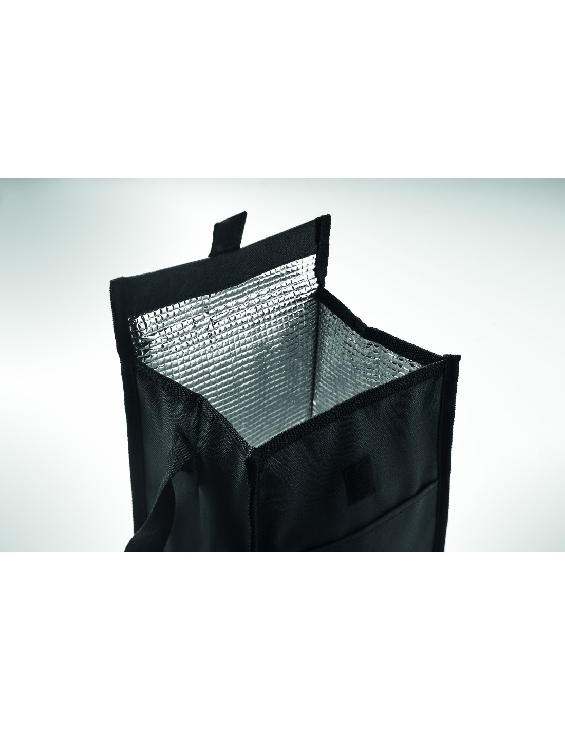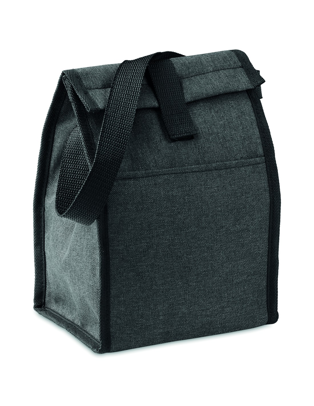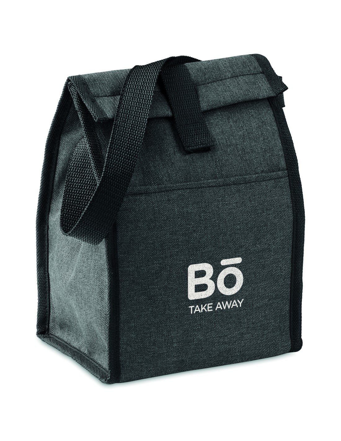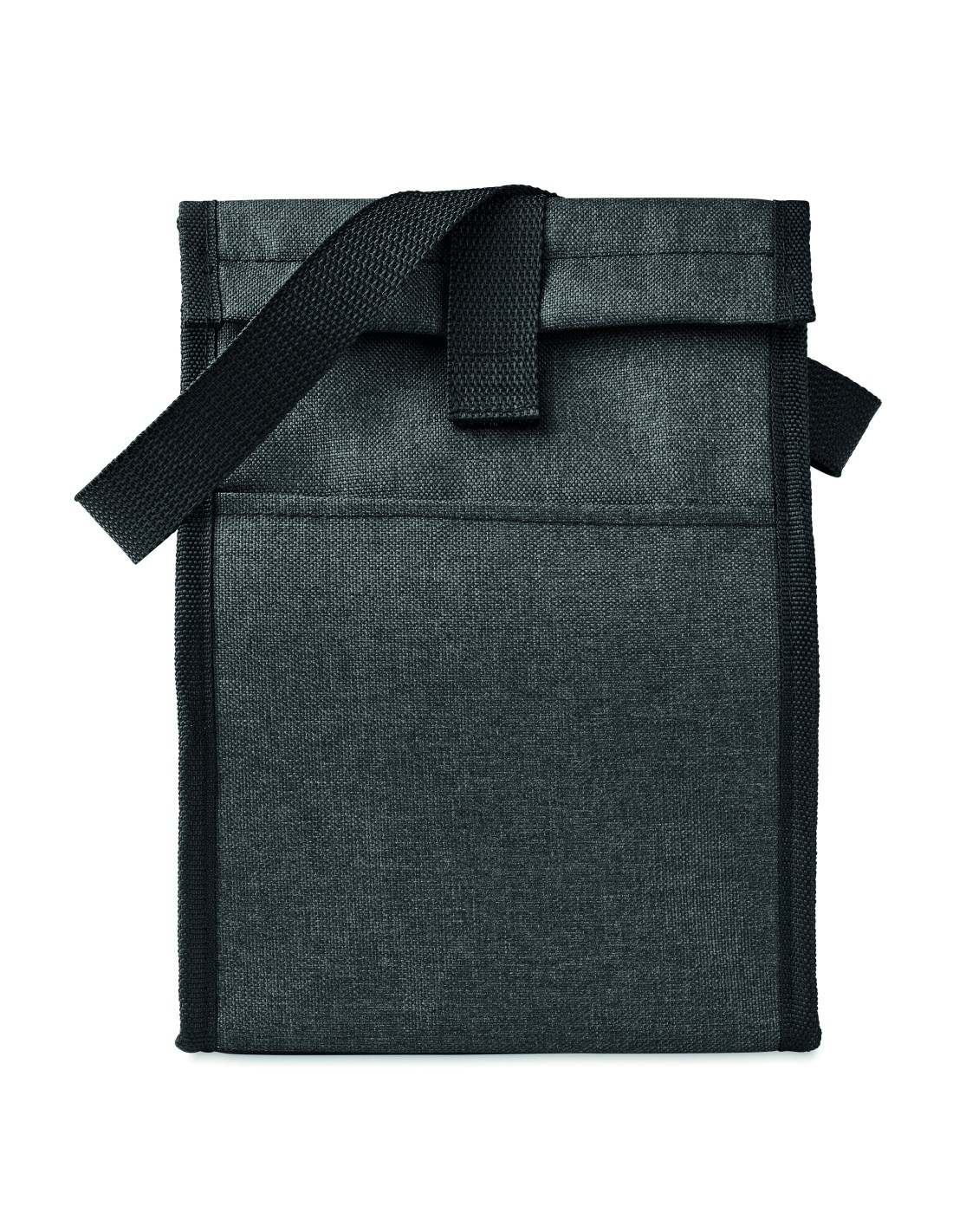 Borsa da pranzo isolata in RPET 600D con tasca frontale. Capacità 3L. Materiale isolante: 2 mm di schiuma PE con foglio di alluminio.
