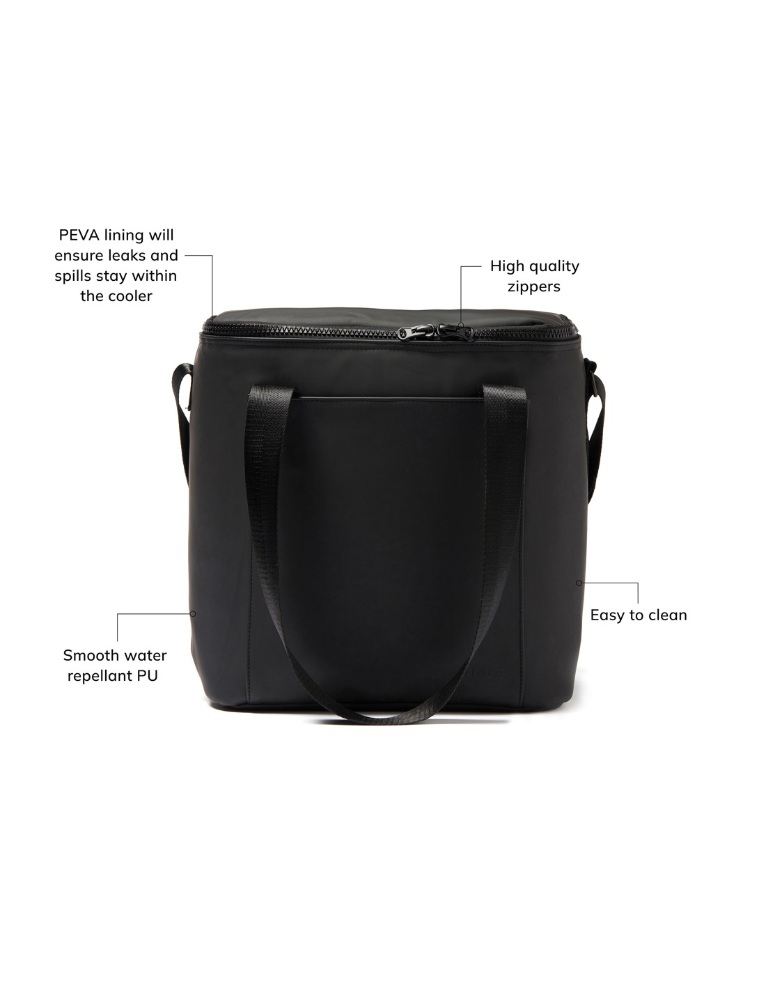 Borsa frigo per 6 lattine. Interno in alluminio ed esterno in tessuto non tessuto 80gr/m². Materiale isolante: Schiuma laminata con foglio di alluminio. Capacità 3L.