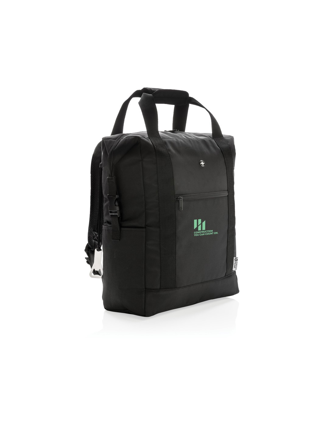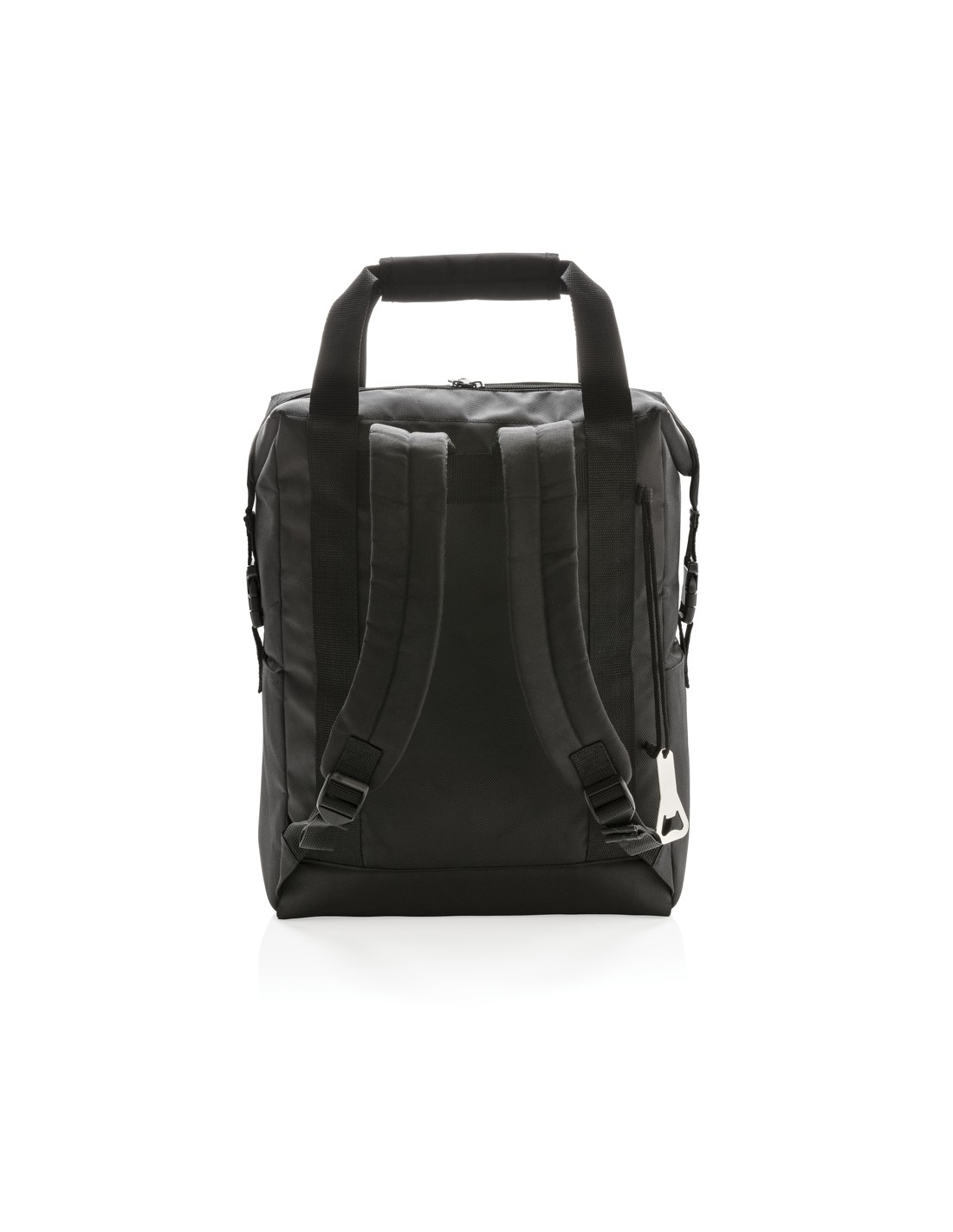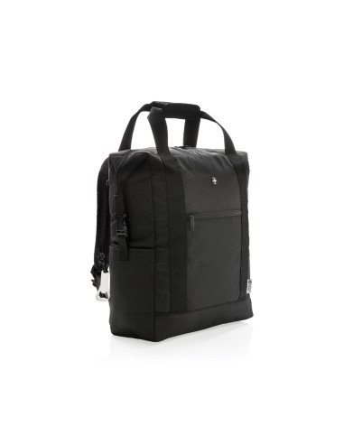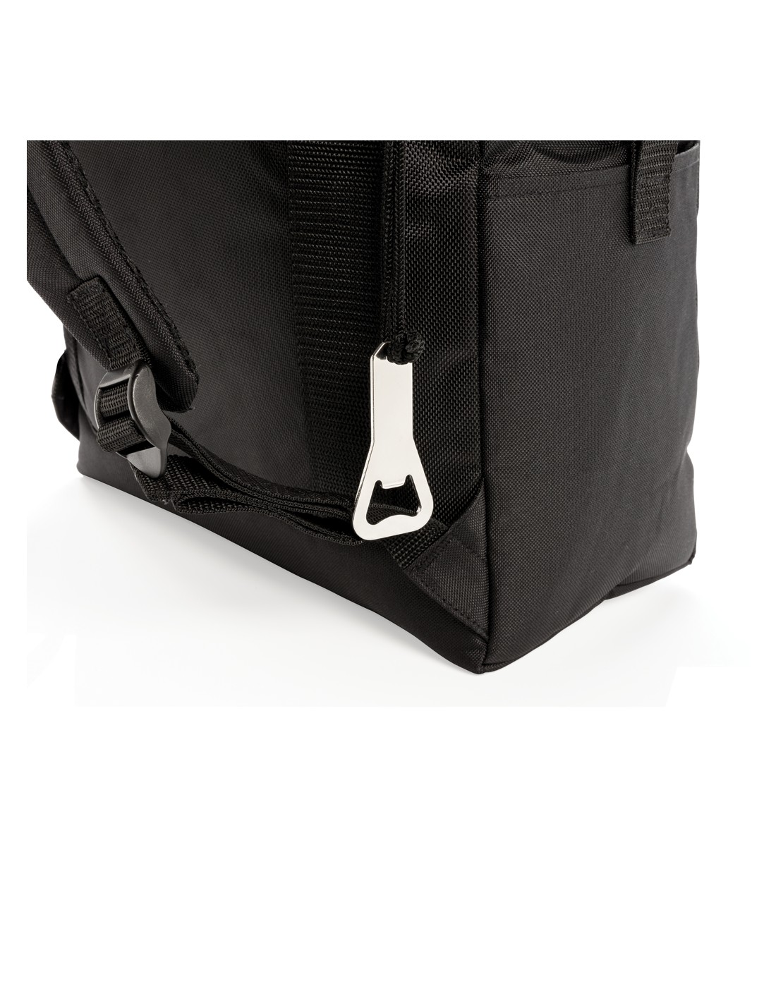 Porta lattine in carta riciclata, con manico e tasca frontale. Per 6 lattine. Materiale isolante: schiuma laminata con foglio di alluminio. Capacità 3L.