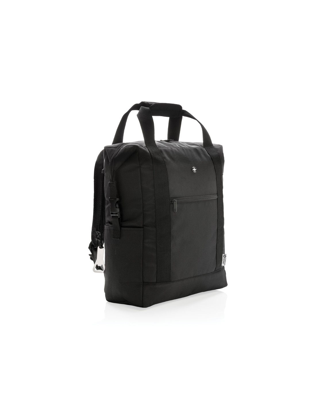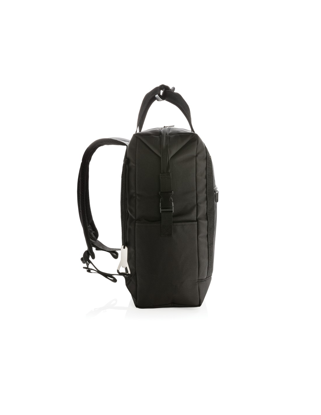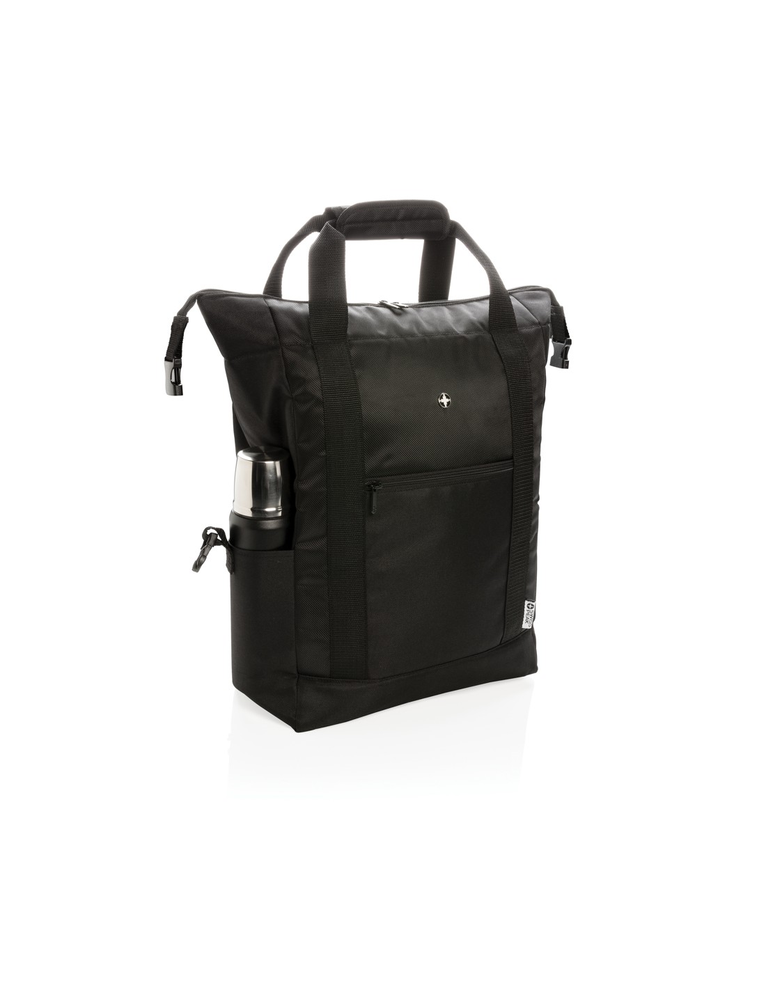 Porta lattine in carta riciclata, con manico e tasca frontale. Per 6 lattine. Materiale isolante: schiuma laminata con foglio di alluminio. Capacità 3L.