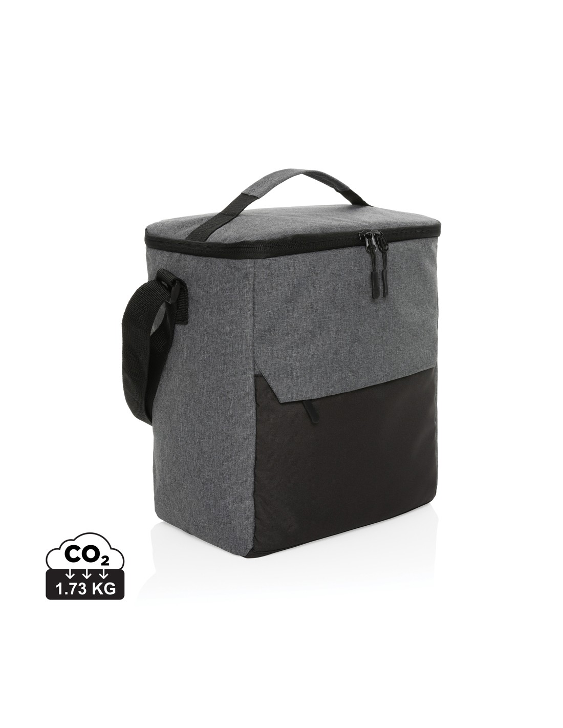 Borsa termica in feltro RPET con tasca frontale. feltro RPET da 1 mm e foglio isolante in alluminio laminato da 3 mm. Capacità: 5 L.