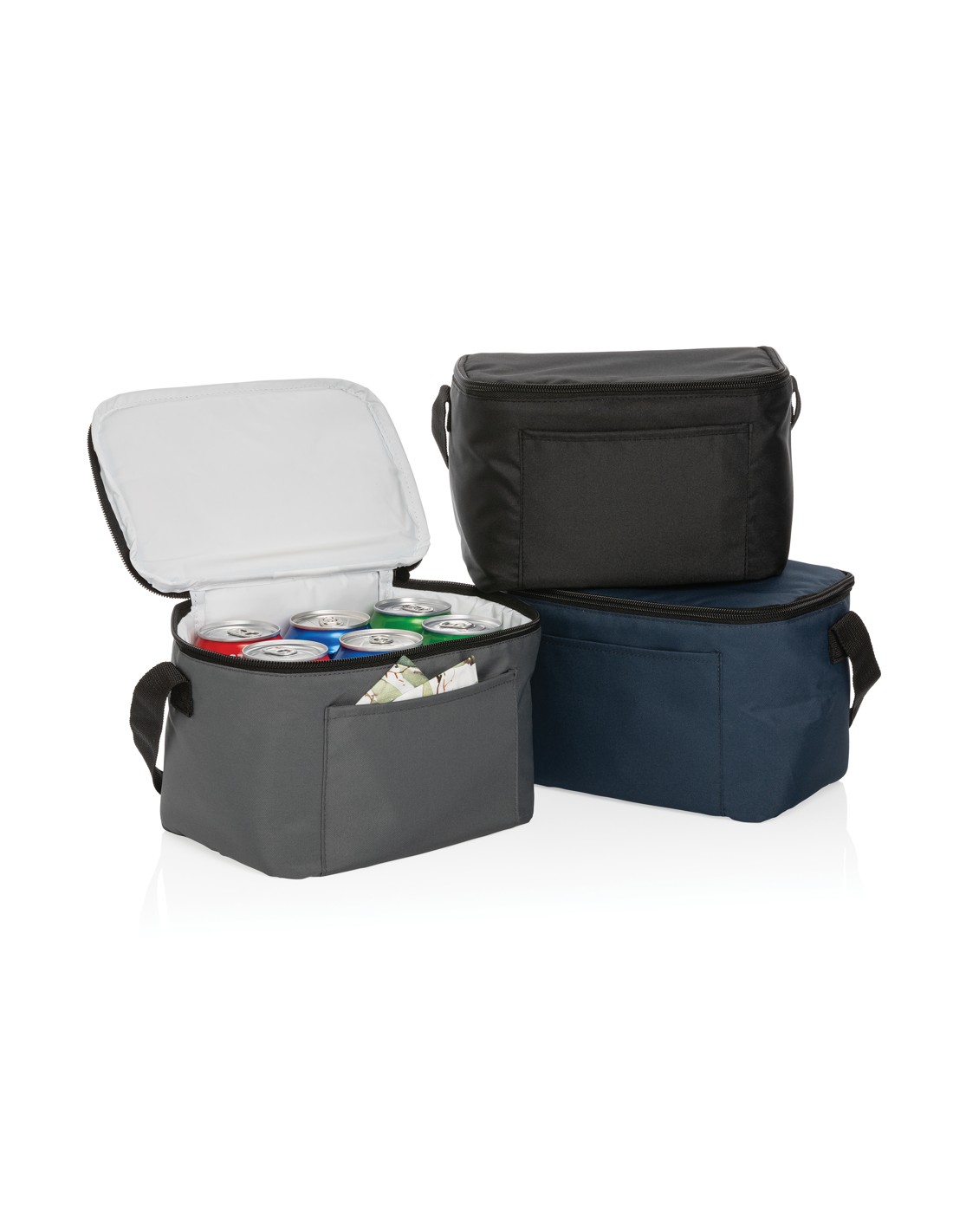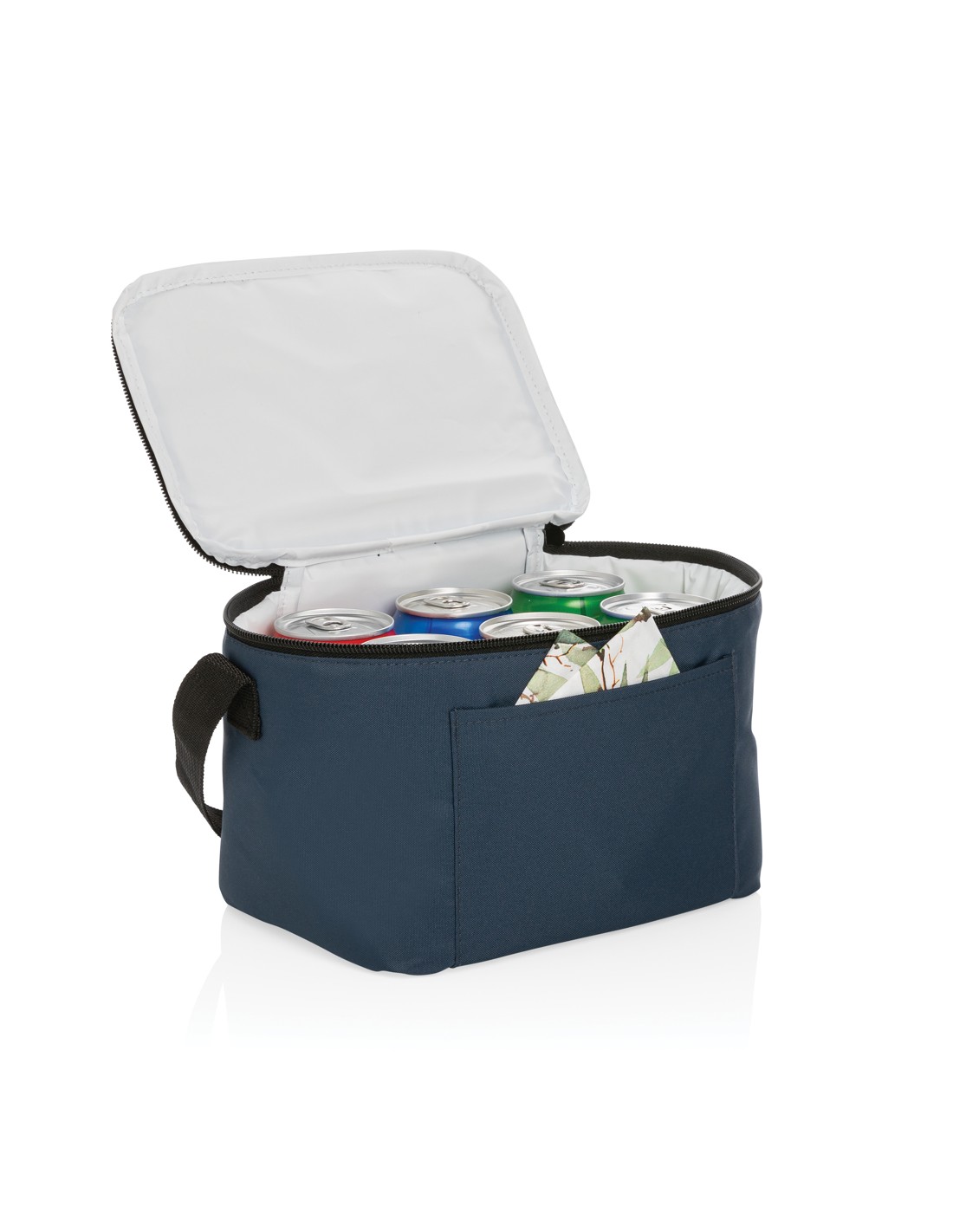 Borsa frigo in tessuto non tessuto RPET 80gr/m². Materiale di isolamento: foglio di alluminio. Capacità 25L. Scomparto principale con cerniera in alto.