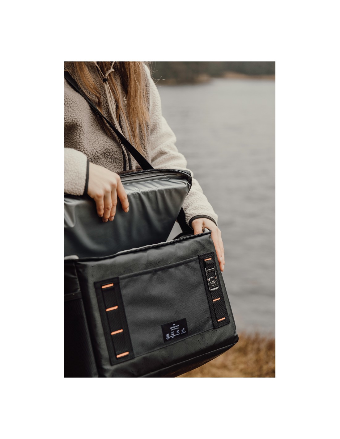 Borsa termica pieghevole con scomparto principale con cerniera e tasca frontale con cerniera. Tracolla regolabile. La borsa termica può essere appiattita grazie al velcro presente sulla tasca frontale. Accessori non inclusi.