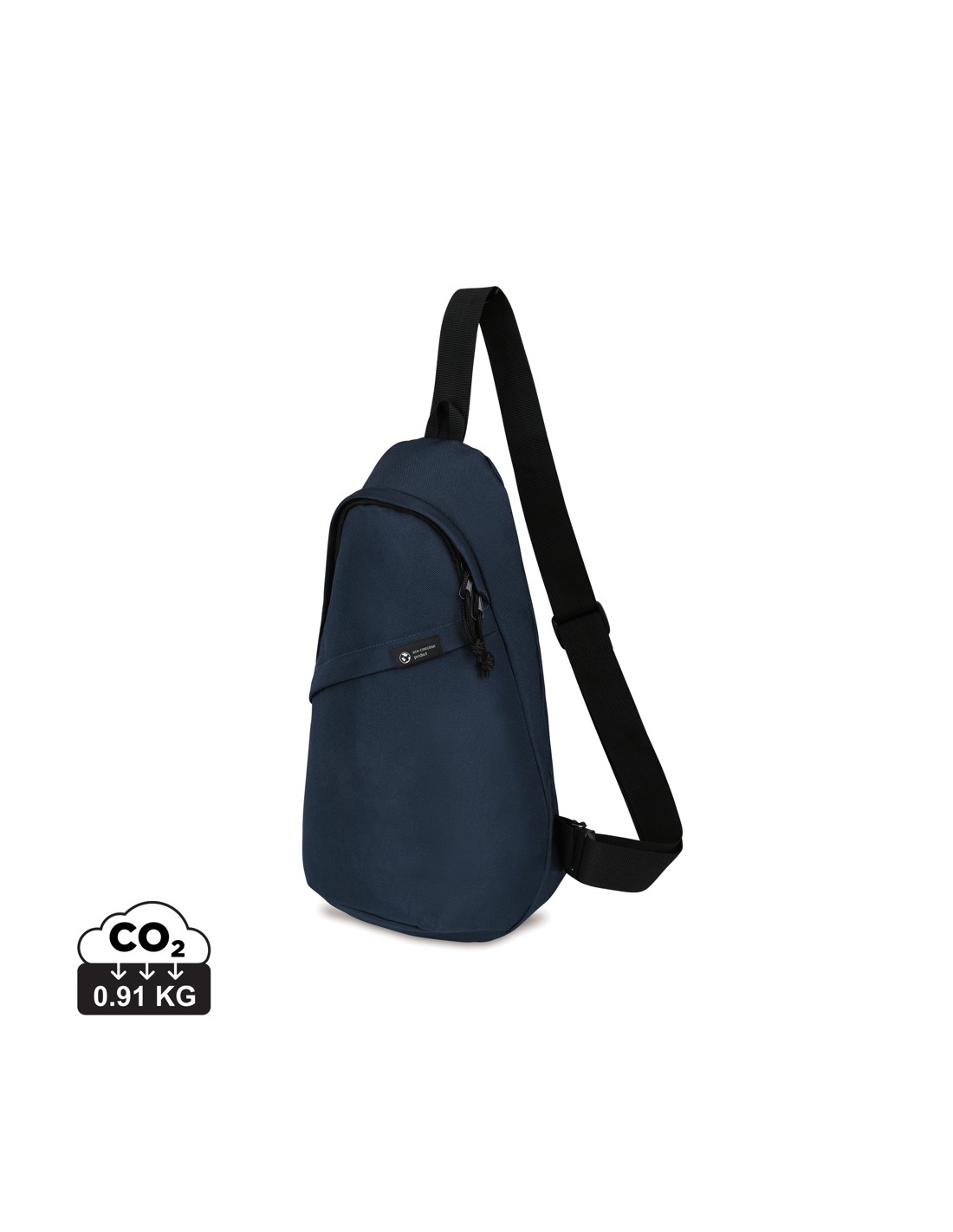 Borsa a tracolla realizzata in plastica PET riciclata con tracolla regolabile. Scomparto principale chiudibile con patella e fibbia.