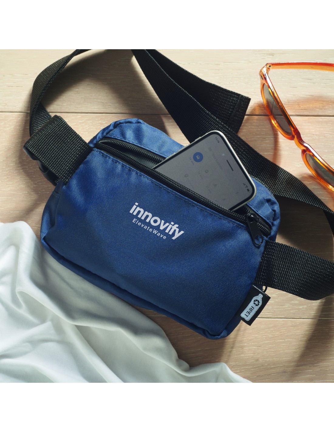 Marsupio in morbido PU con fodera 300D RPET e bordini in 210D RPET.