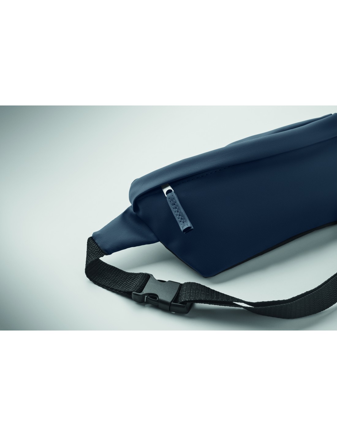 Marsupio con rivestimento in PU in poliestere 600D RPET, fodera in poliestere 210D RPET e tasca frontale con cerniera.