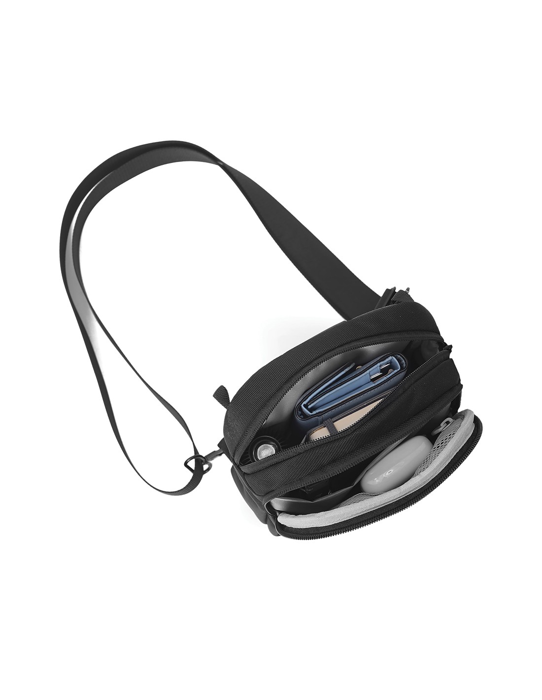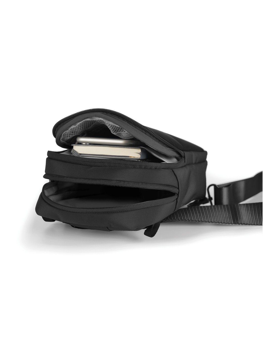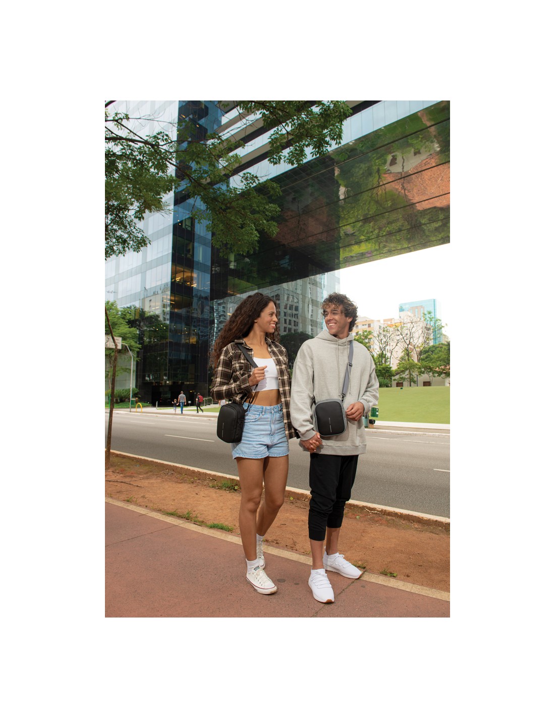 Una versione moderna e sostenibile della classica borsa a tracolla, realizzata con tessuto riciclato e cinghie ricavate da bottiglie di plastica. Tasca frontale con cerniera per riporre gli accessori. Ampio scomparto principale con doppia cerniera. Tracolla regolabile per adattarsi a tutte le...