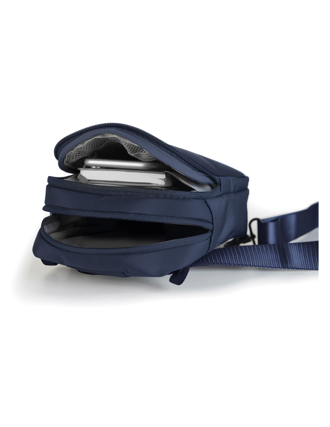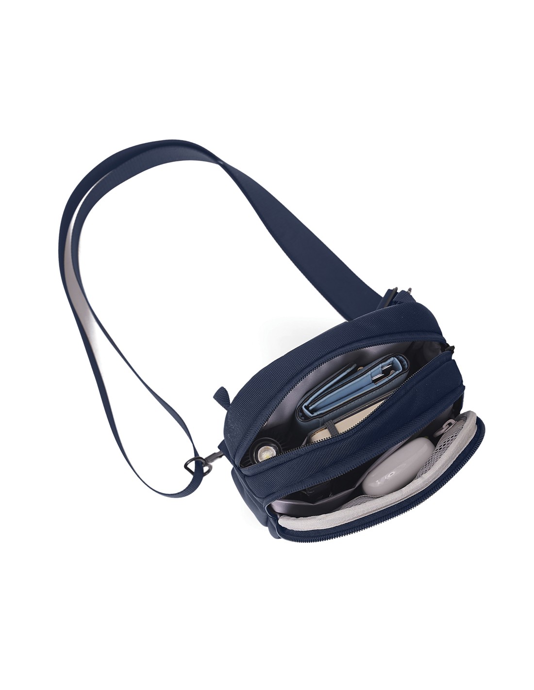La tracolla Boxy Sling è una borsa versatile, progettata per trasportare gli oggetti di uso quotidiano. Lo zaino può essere indossato al collo, a tracolla o in vita. Ha una capacità sufficiente per contenere un cellulare, un portafoglio o un portamonete, un passaporto, un notebook e vari altri piccoli oggetti. La tasca posteriore nascosta è perfetta per riporre con discrezione contanti, carte o altri oggetti di valore. La tracolla Boxy è dotata di un'originale tasca a scomparsa porta bottiglia, che può essere nascosta quando non viene utilizzata. È prodotta con materiali riciclati. Con tracciante AWARE™ che convalida l'uso genuino di materiali riciclati. 27% di contenuto riciclato.