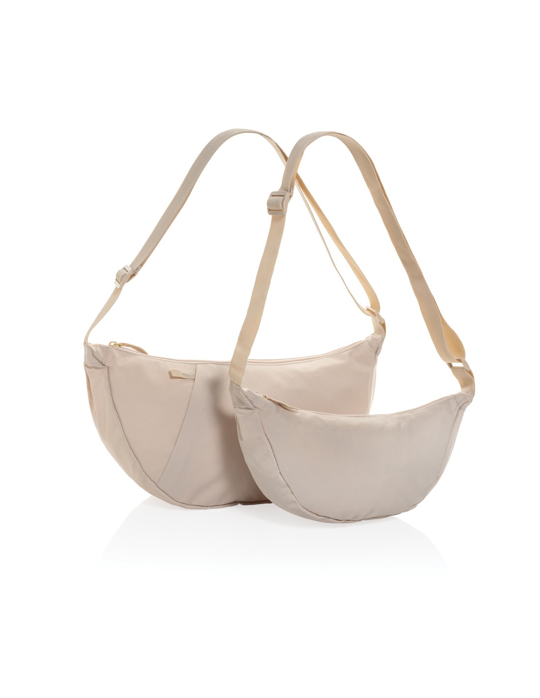 Marsupio (cross body bag) in morbido PU con fodera in poliestere 210D RPET. 1 tasca principale con cerniera, 1 tasca posteriore con cerniera e scomparto interno in rete.