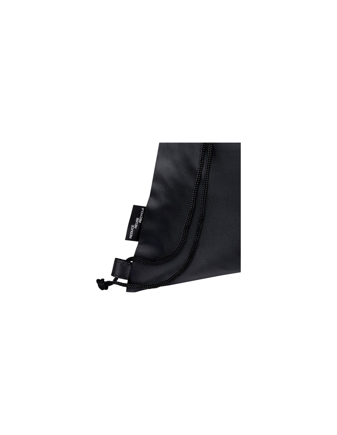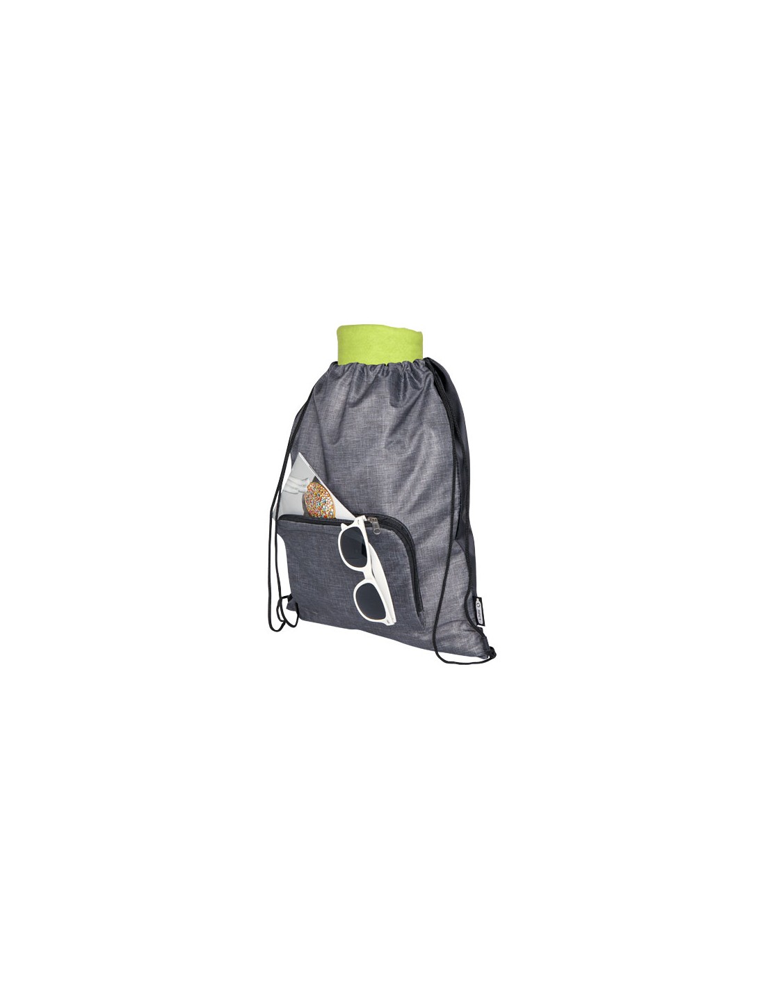 La borsa pieghevole Ash realizzata in materiale riciclato presenta uno scomparto principale con chiusura a coulisse e una tasca anteriore con zip per ripiegarla all'interno, trasportarla e riporla con facilità.