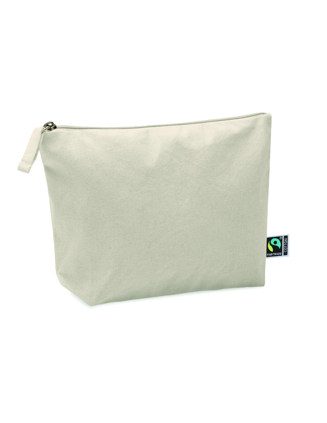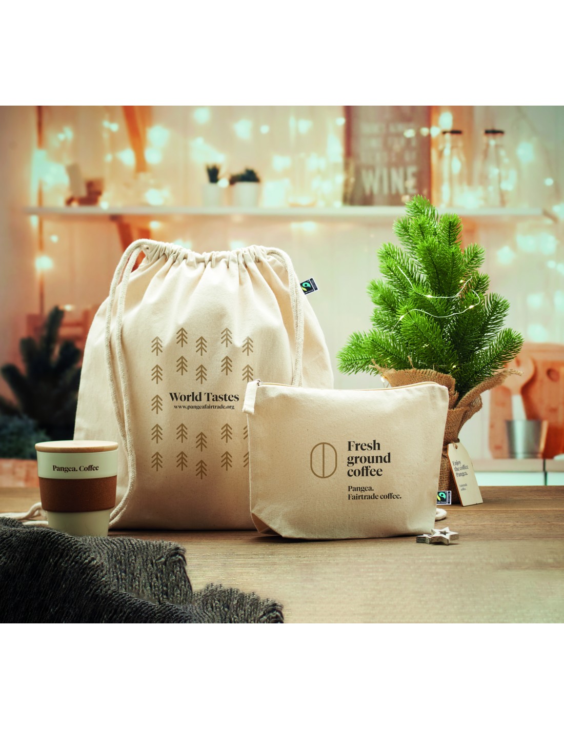 Borsa per cosmetici o accessori in tessuto riciclato (70% cotone riciclato e 30% poliestere RPET) con tiralampo coordinata. 320 gr/m².