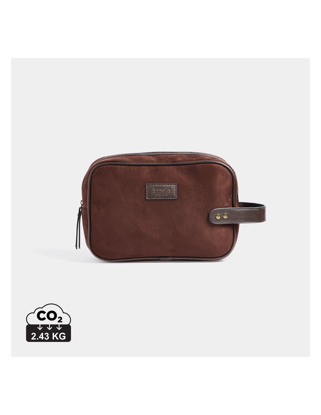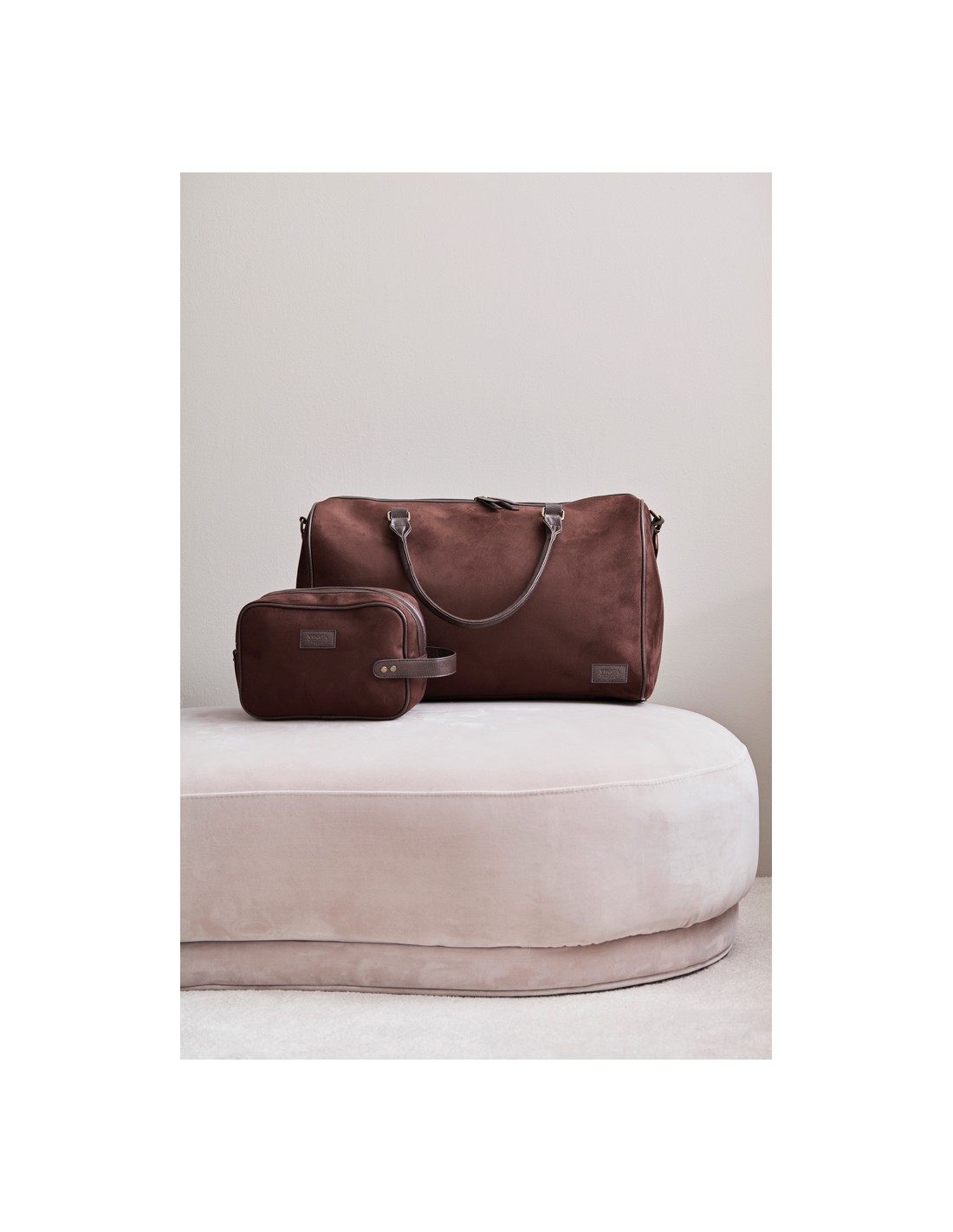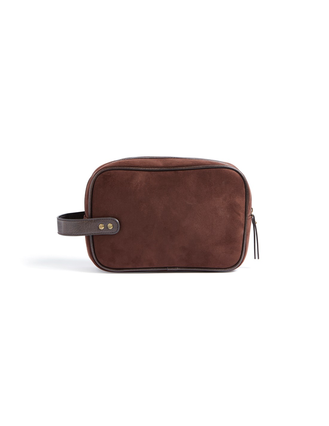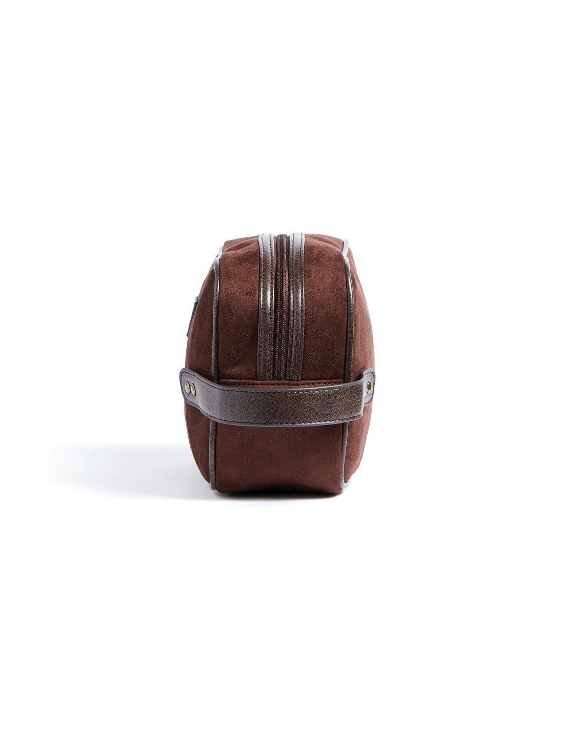Classica ma moderna pochette in finta pelle scamosciata con dettagli in PU. Ti consente di riporre facilmente i tuoi articoli per l'igiene con stile, sia a casa che durante il viaggio. Ha una dimensione pratica ed è facile da trasportare, grazie al manico con dettagli in ottone sul lato corto.