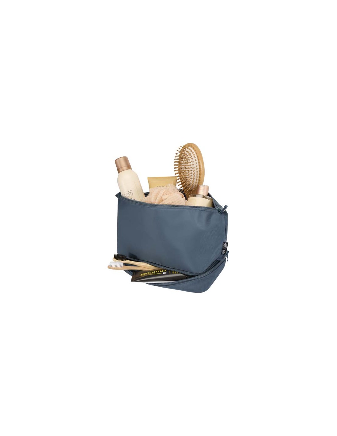 Progettato come pratico accessorio da viaggio, il beauty case Muse è ideale per trasportare oggetti essenziali come spazzolino, dentifricio, shampoo e altri piccoli oggetti. È realizzato in poliestere riciclato certificato GRS per una scelta più sostenibile.