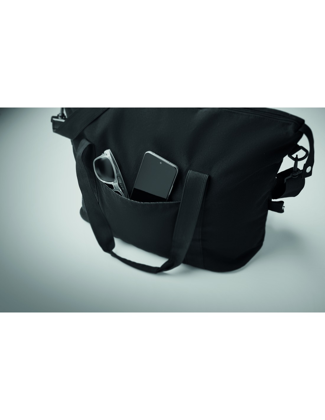 Ampia borsa da viaggio con ampio scomparto principale, tasca frontale con cerniera e tracolla regolabile.