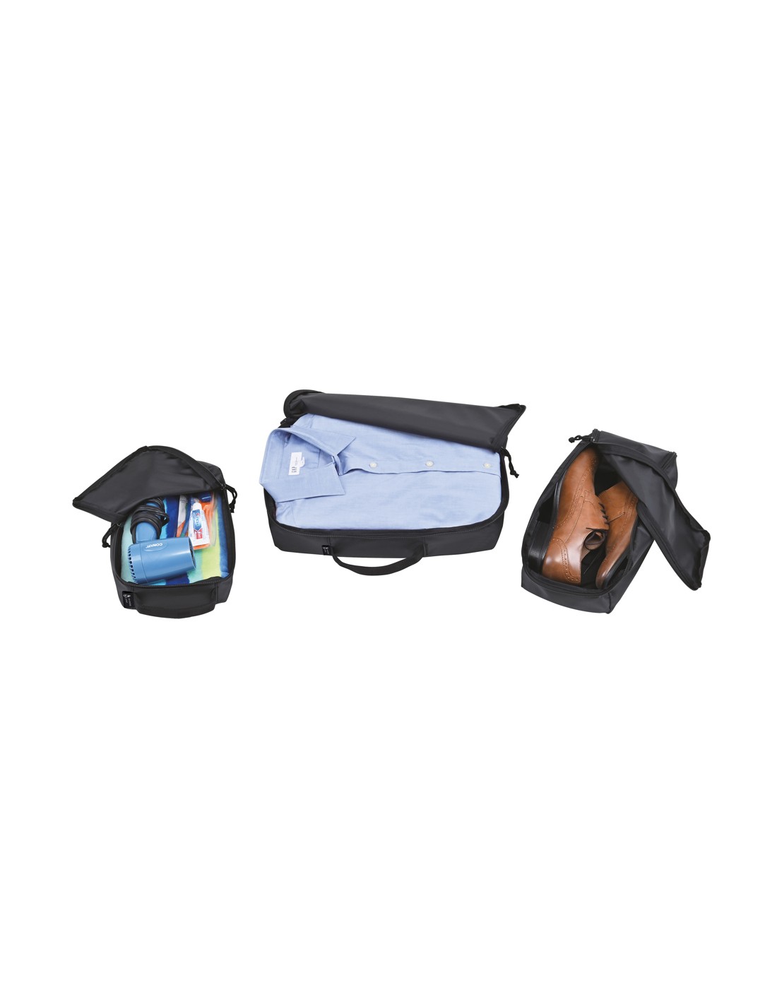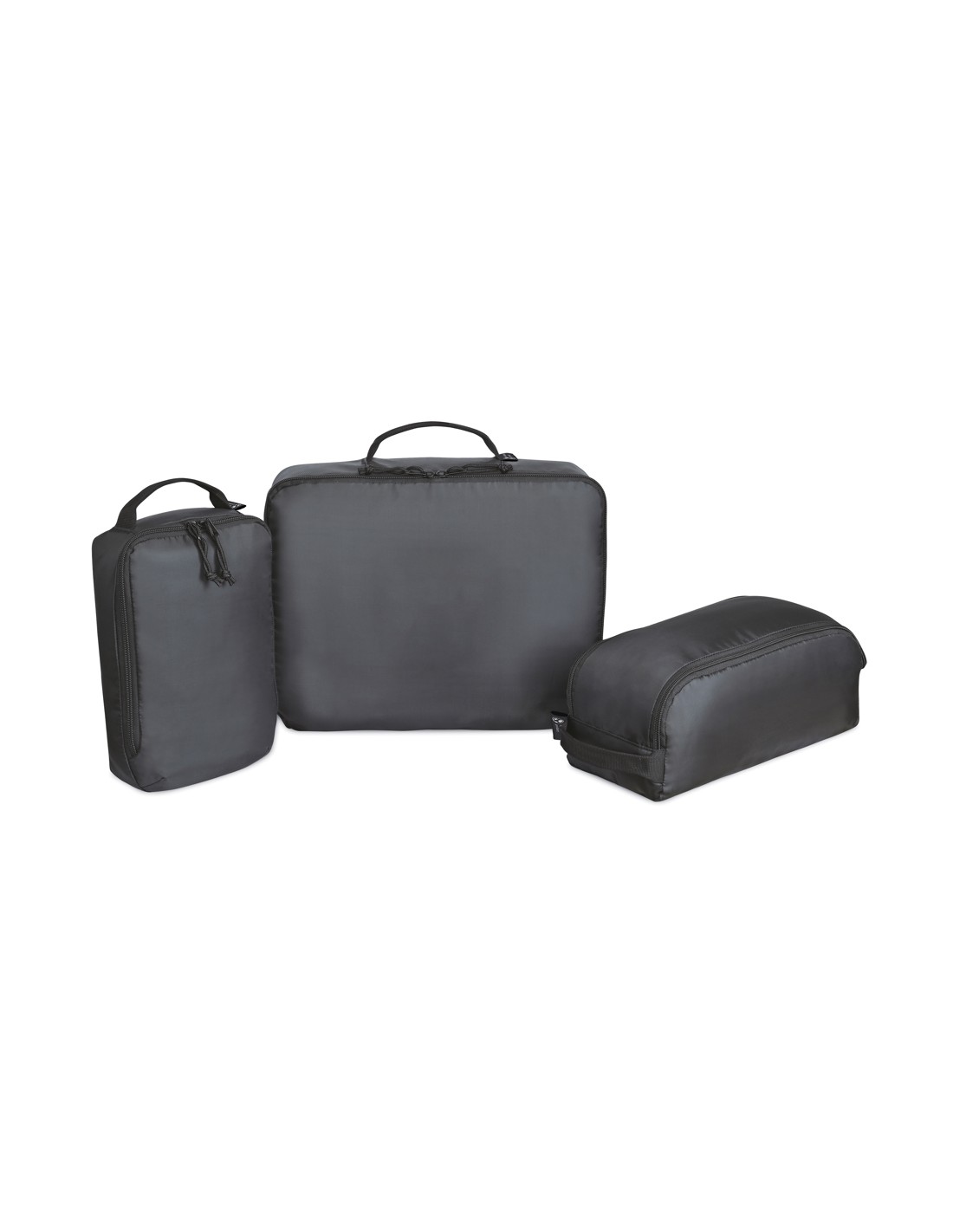 Una versione moderna e sostenibile dei cubi da viaggio, realizzati con tessuto riciclato e cinghie ricavate da bottiglie di plastica. Set di tre cubi da viaggio per organizzare al meglio i bagagli. Ogni cubo è dotato di una maniglia superiore per facilitarne il trasporto. I cubi si incastrano l'uno nell'altro per riporli facilmente quando non vengono utilizzati. Cubo grande: 15 L 12 A 3,5 P. Cubo medio: 12,375 L 5,5 A 6 P. Cubo piccolo: 6,75 L 11 A 2,5 P. Disponibile su entrambe le sponde dell'Atlantico. Questo articolo è offerto anche da Gemline per i clienti negli Stati Uniti e in Canada.